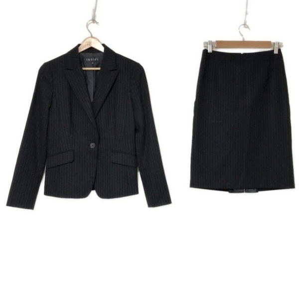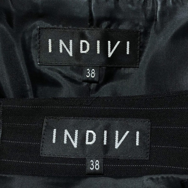 インディビ INDIVI スカートスーツ - ネイビー×ライトグレー レディース ストライプ レディーススーツ