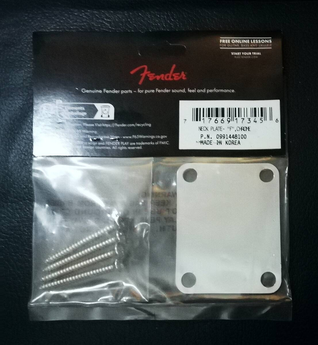 ☆Fender USA☆Neck Plate ネック・プレート☆Fマーク刻印(1965年後期~)☆シルバー☆ネジ付き☆純正品☆未開封新品
