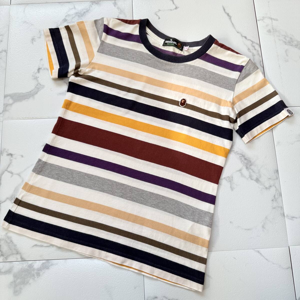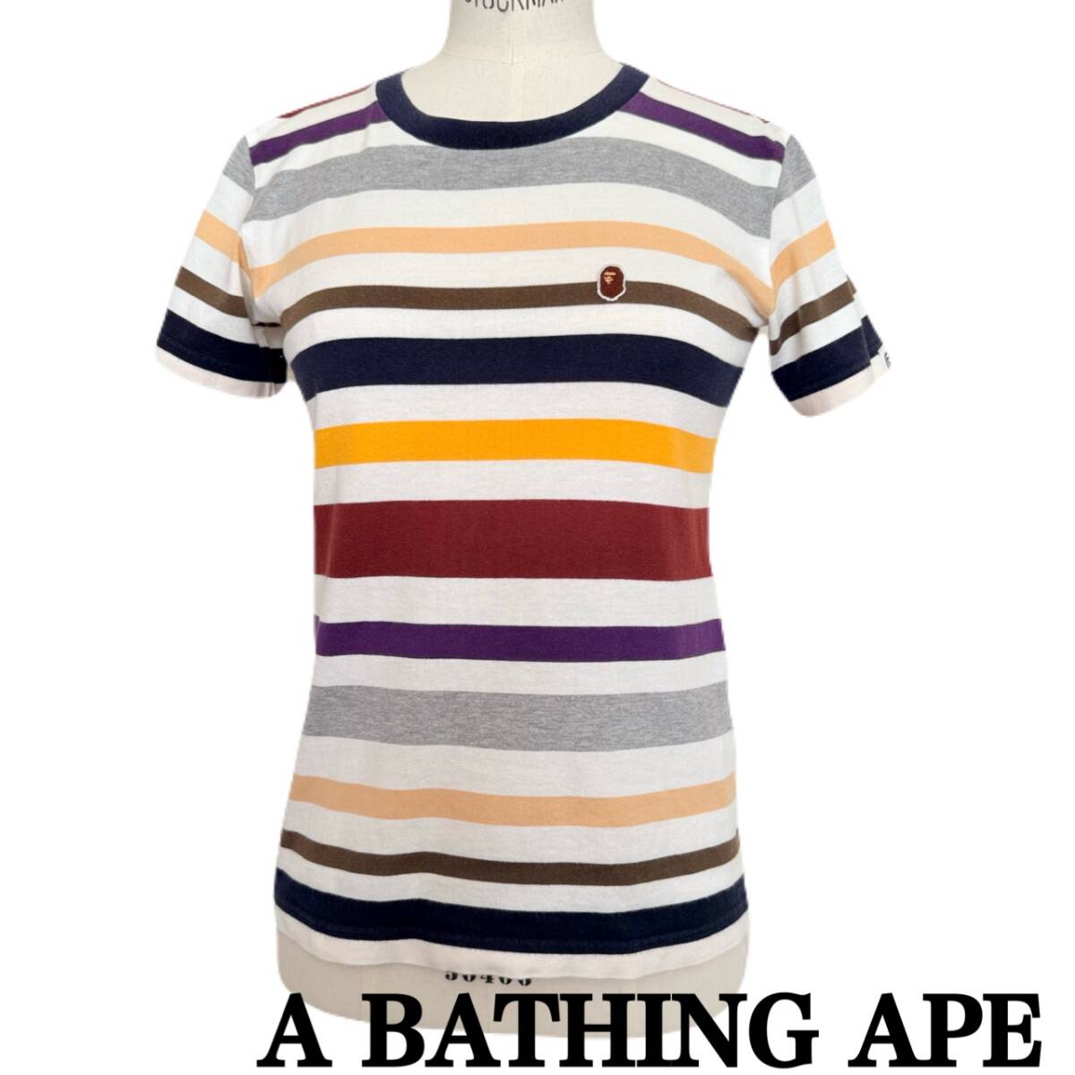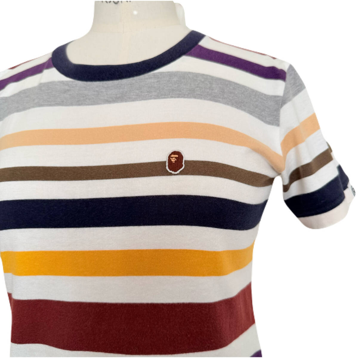 ★ 商品名 ★ A BATHING APE アベイシングエイプ 90~00s 金タグ ゴールドタグ マルチボーダー エイプヘッド ワンポイント Tシャツ レディース XS Y2K ★ |