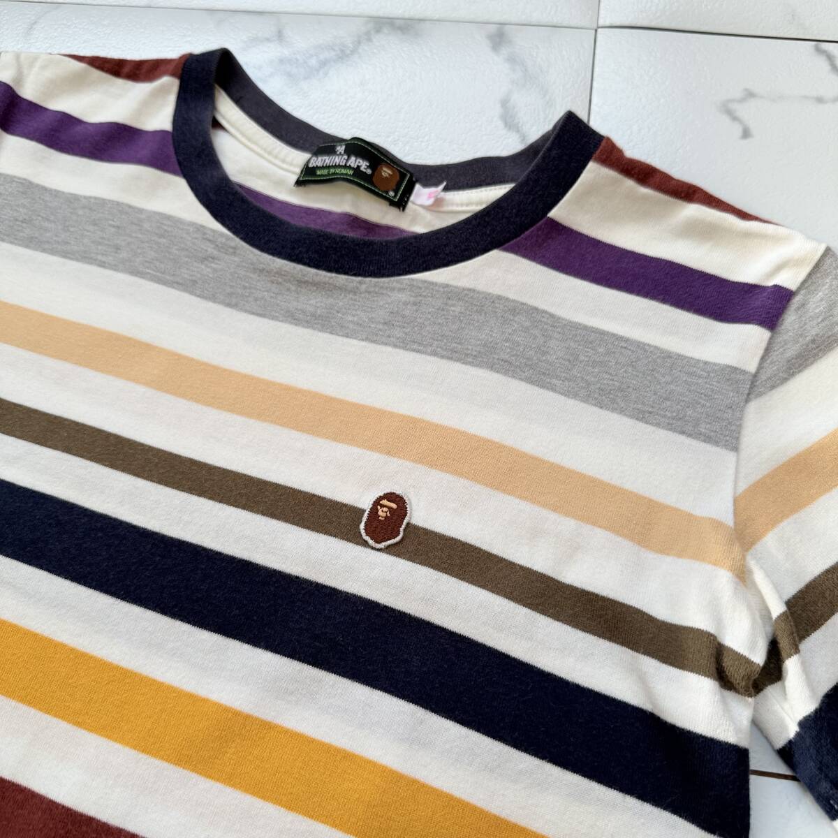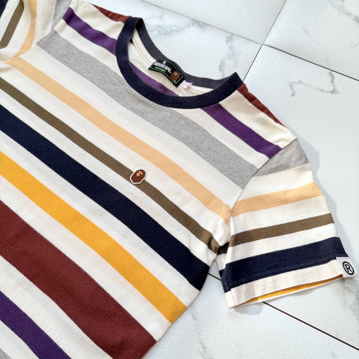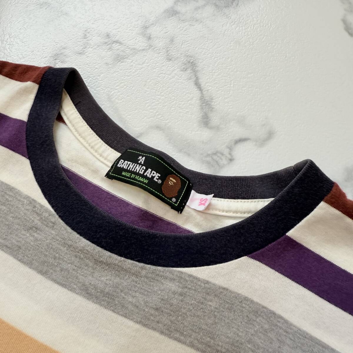 ★ 商品名 ★ A BATHING APE アベイシングエイプ 90~00s 金タグ ゴールドタグ マルチボーダー エイプヘッド ワンポイント Tシャツ レディース XS Y2K ★ |