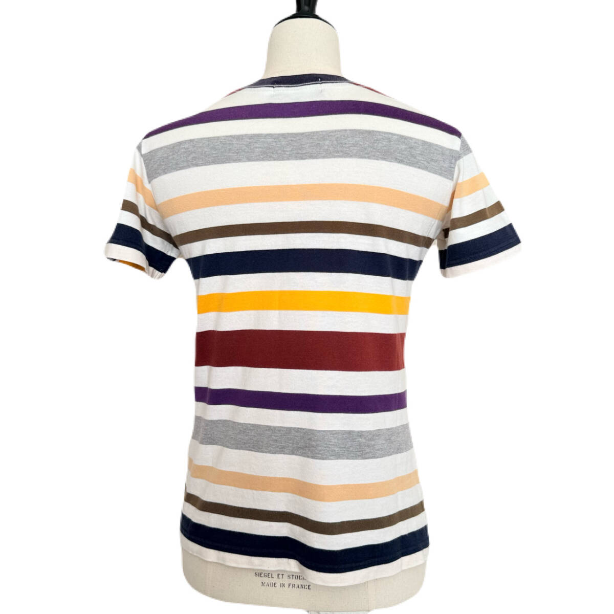 A BATHING APE アベイシングエイプ 90s 00s 金タグ ゴールドタグ マルチボーダー エイプヘッド ワンポイント Tシャツ レディース XS Y2K になります。 ★サイズ XS ★品質 100% コットン ★平置きサイズ 肩幅38㎝ 身幅43㎝ 着丈54㎝ 袖丈16㎝ 多少の誤差はご了承下さい。 ★状態 中古 衿周りに着用による軽い退色がございますが、目立つダメージ汚れなく、比較的良い状態です。中古品もご理解の上、ご検討頂けましたら幸いです。 | ||
