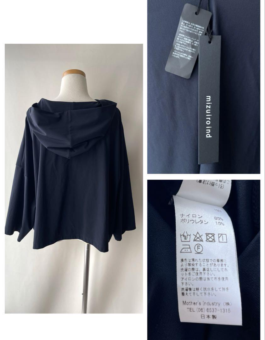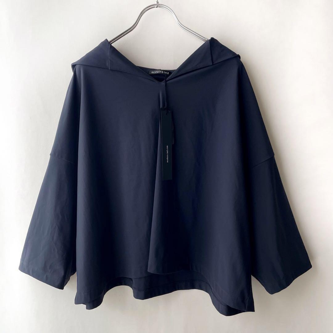 未使用 ミズイロインド ネイビー フード付き クロップドパーカー プルオーバー ショート丈 レディース サイズフリー 手洗い可
