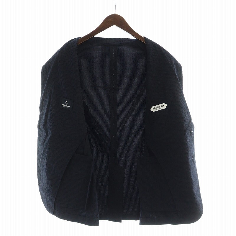 ソブリン SOVEREIGN 24SS テーラードジャケット シングル ストライプ 長袖 ロゴ lanificio luigi zanieri生地 L 紺 ネイビー
