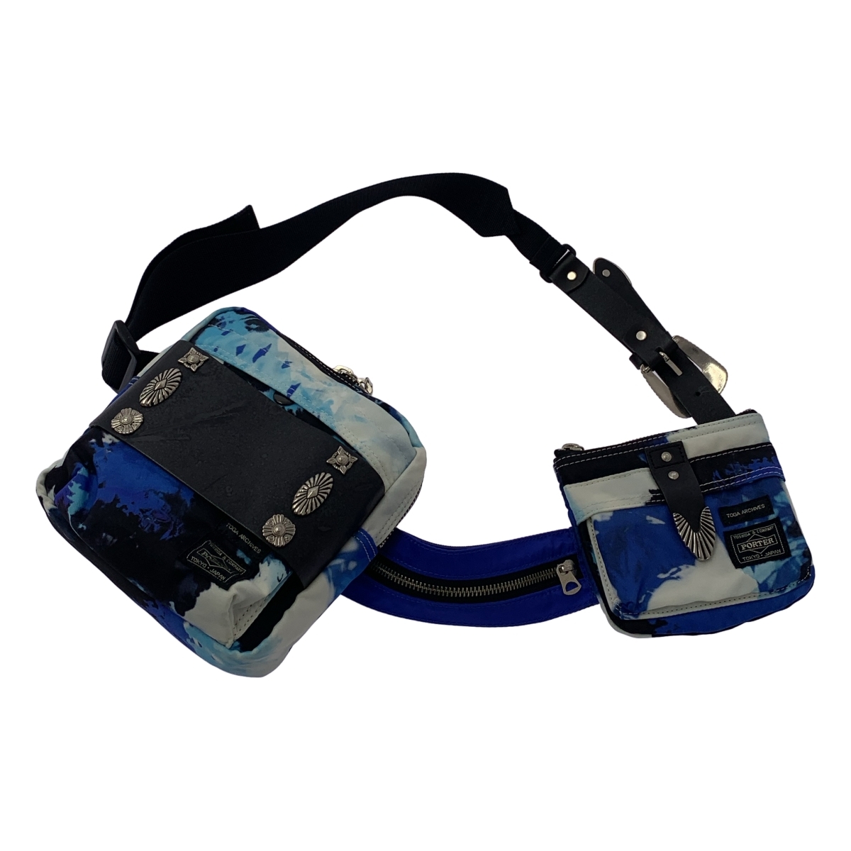 【美品】 TOGA / トーガ | × PORTER / ポーター Belt bag / レザー切替 コンチョ ベルトバッグ / ユニセックス | ブルー/ホワイト | メンズ