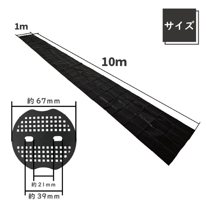 ★防草シート 1m×10m 農用シート 人工芝 芝生 DIY 雑草対策 U字 針 スペーサー 2個 セット ★