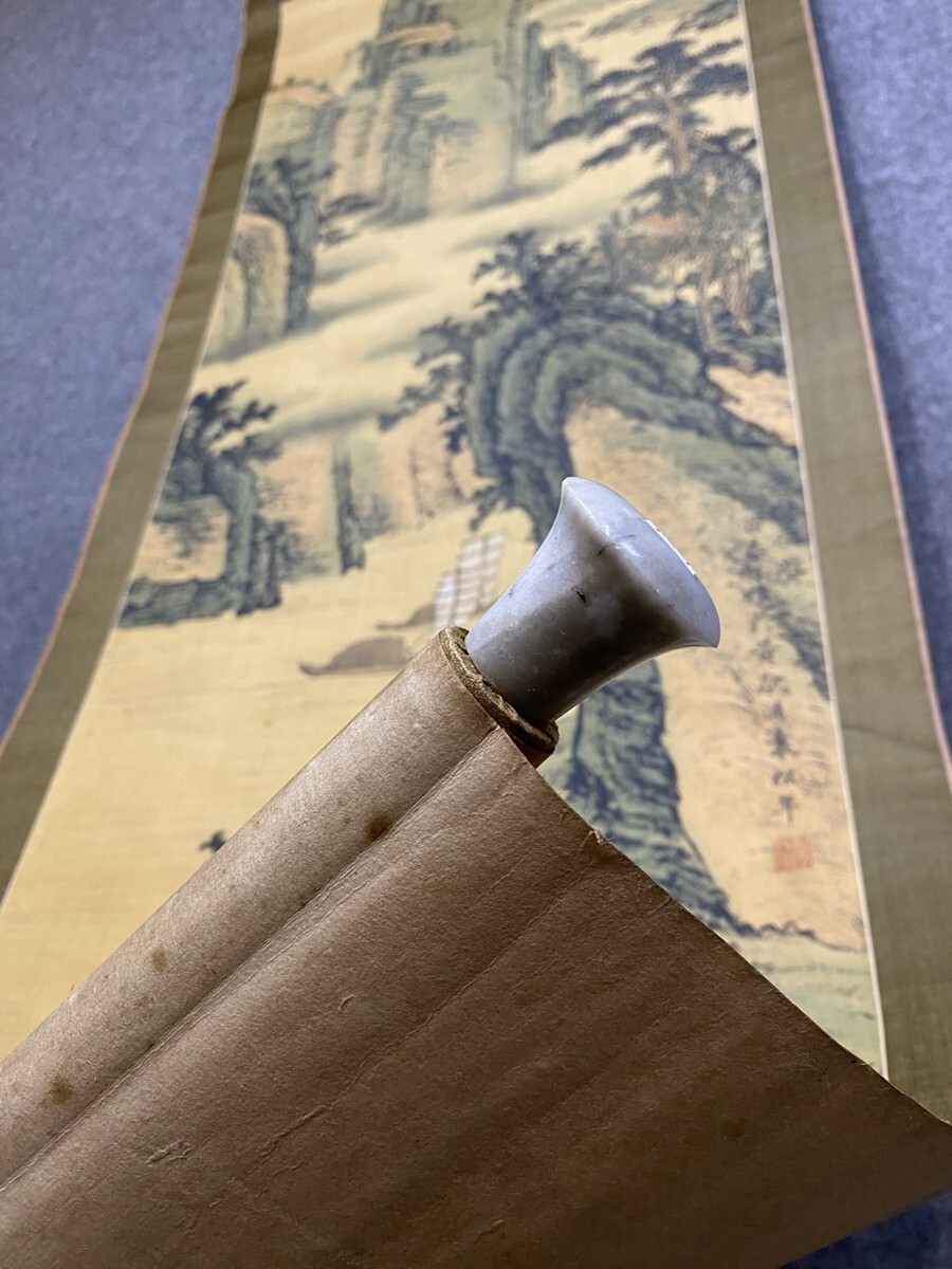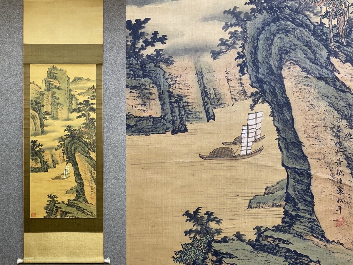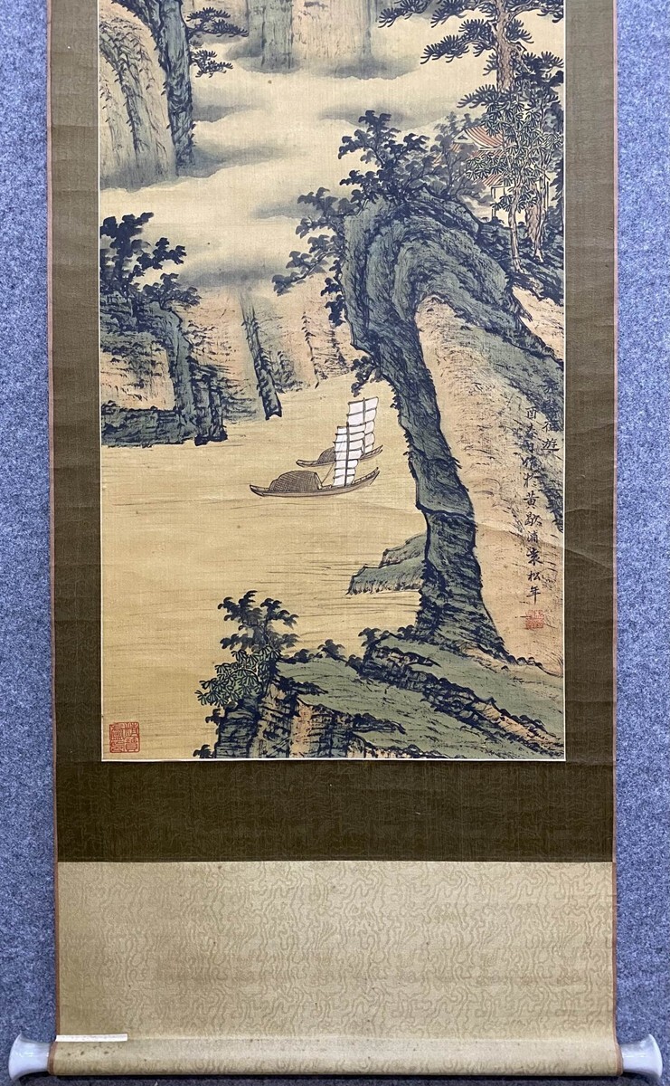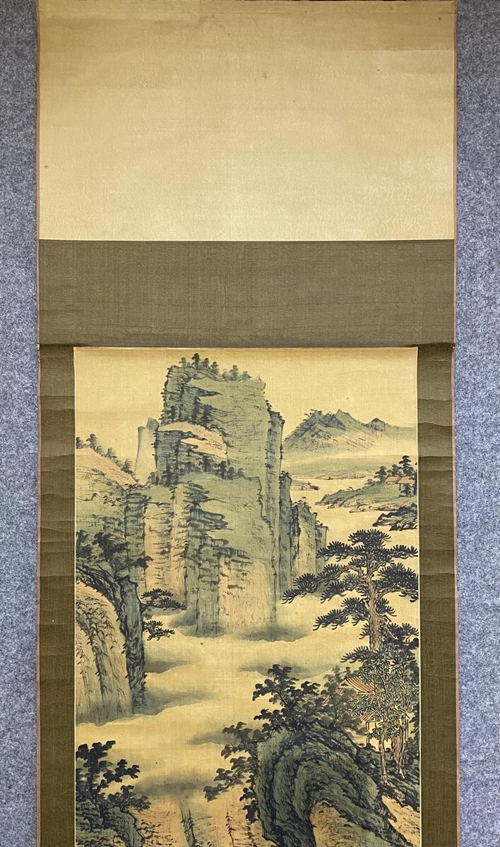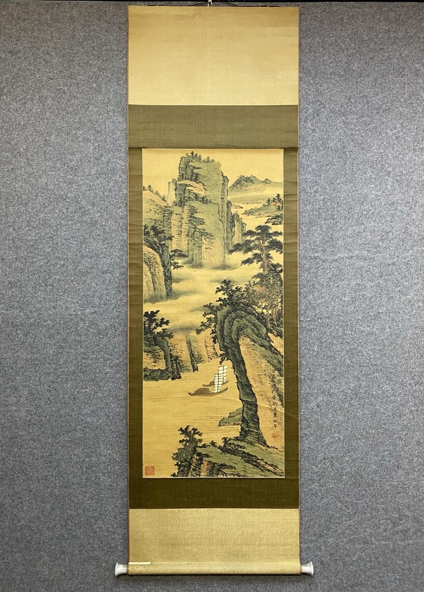 【瓏】「袁松年作 山水図」近代画家 肉筆絹本 掛け軸 書画立軸 巻き物 中国書画 古美術 蔵出