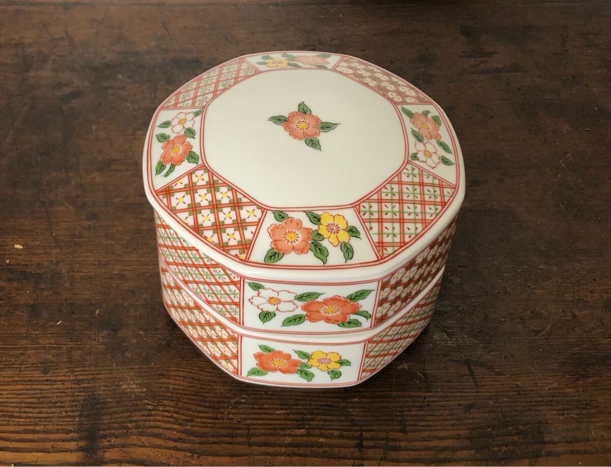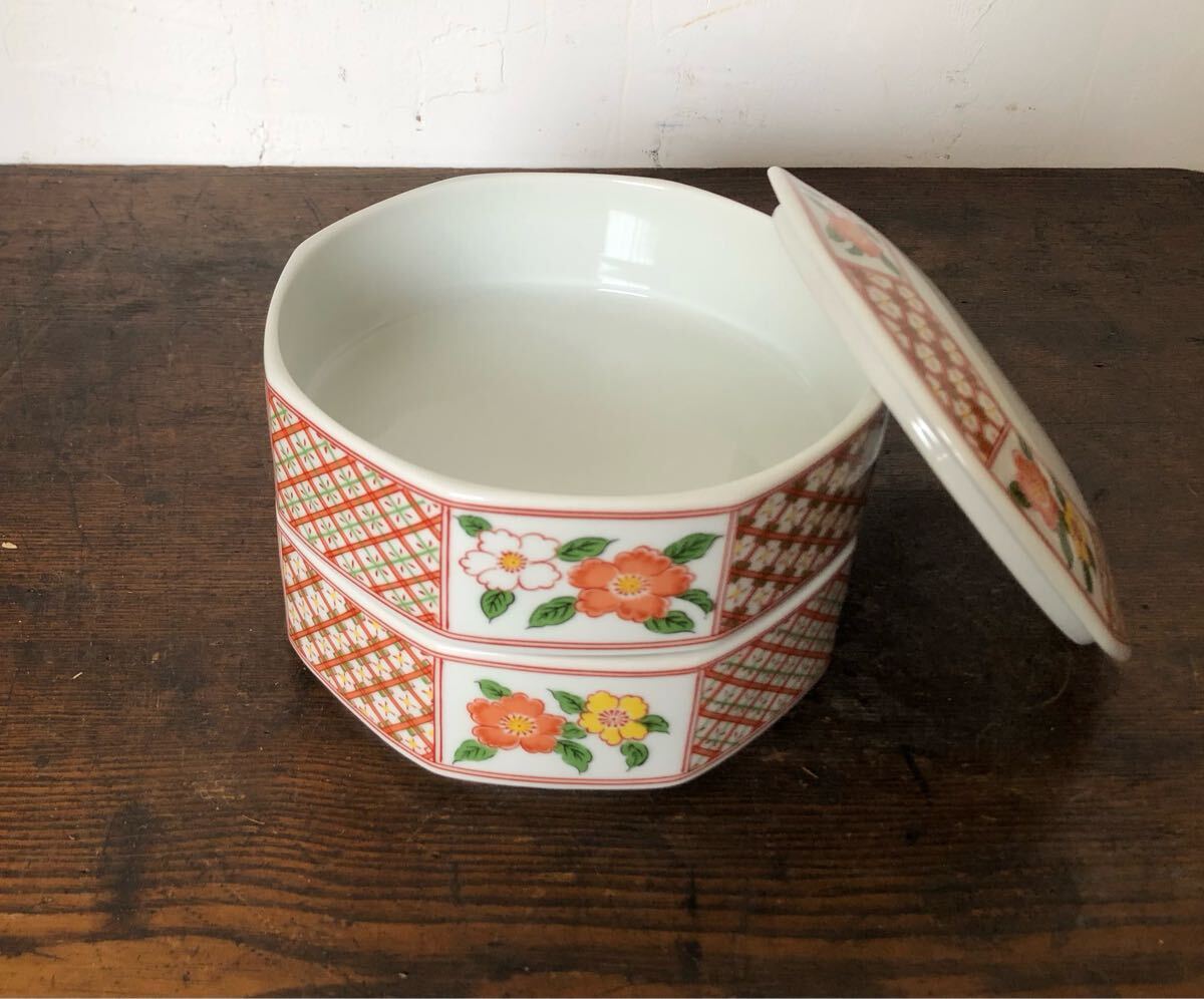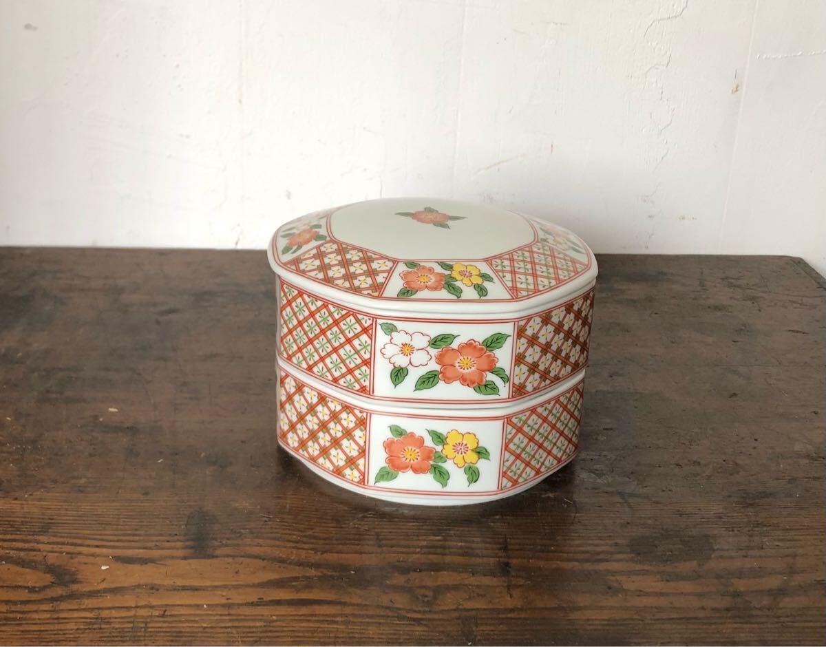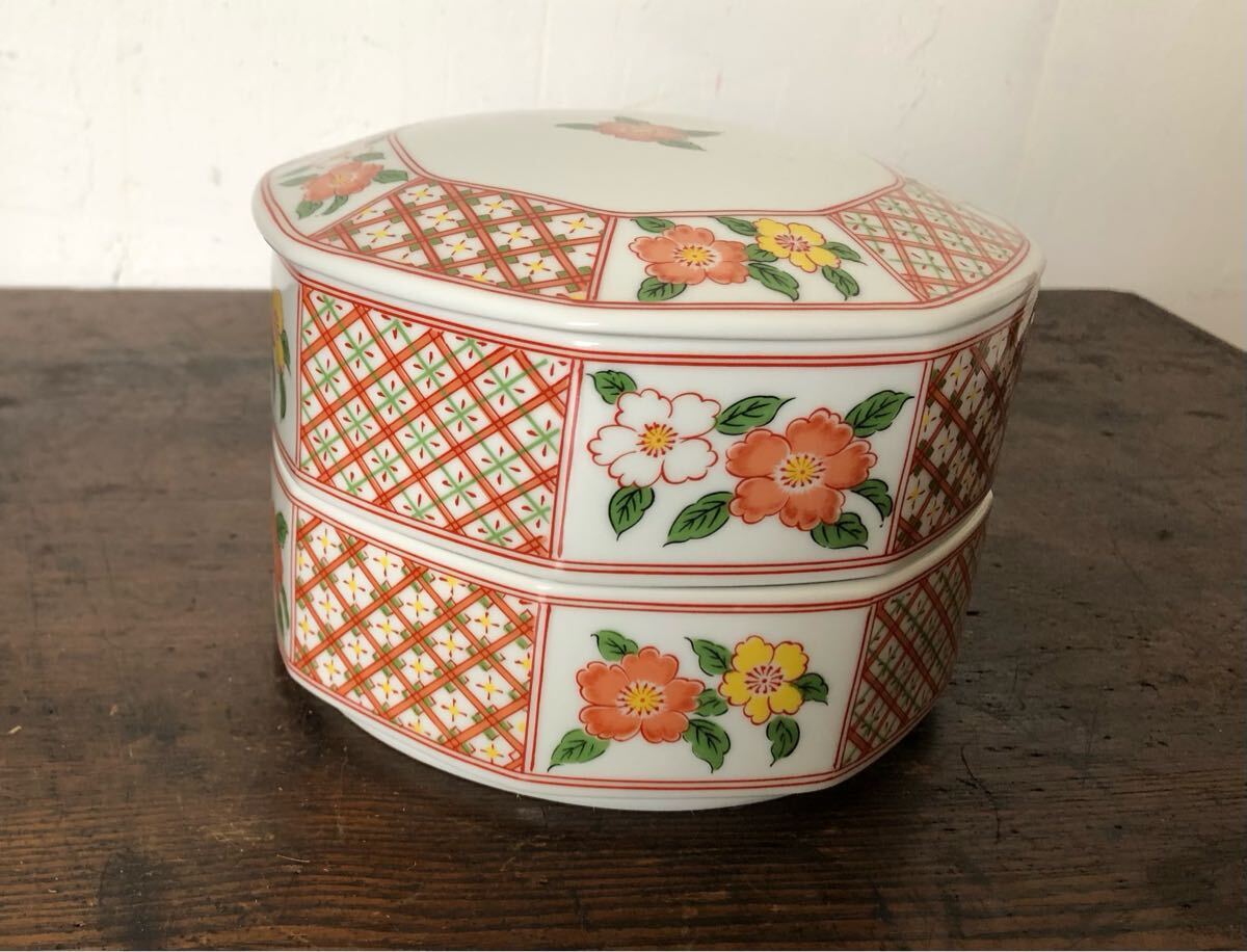 商品名 : 和食器 たち吉 二段重/ 陶器/ 重箱/蓋付き/ 重ね鉢/赤絵