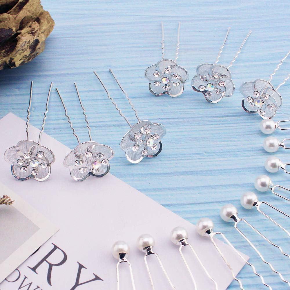 パール 髪飾り 花&パールのヘアアクセサリー お花かんざし・まとめ髪・Uピン ヘアピン 結婚式 着物 成人式 卒業式 和装 花嫁 普段使い 16個セット k3 210