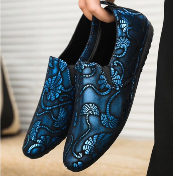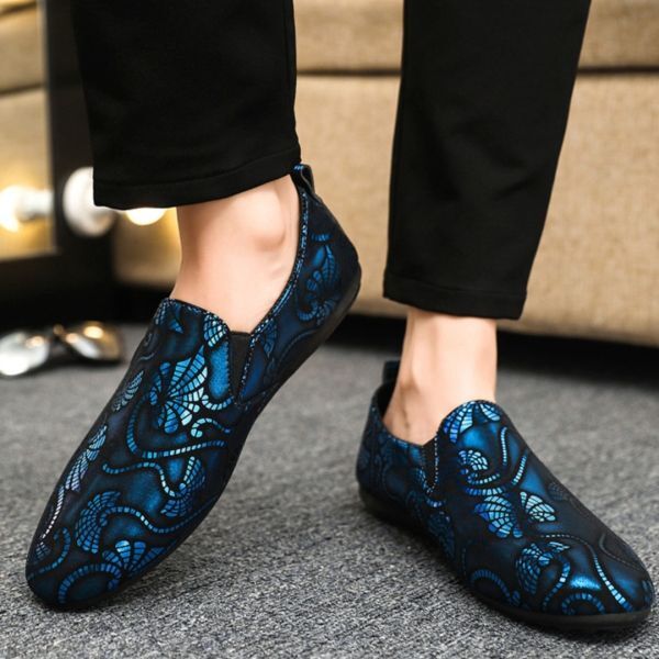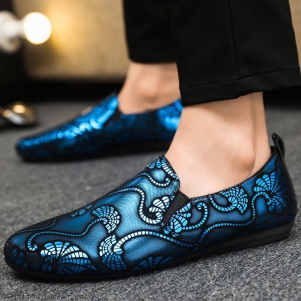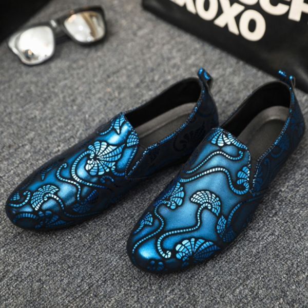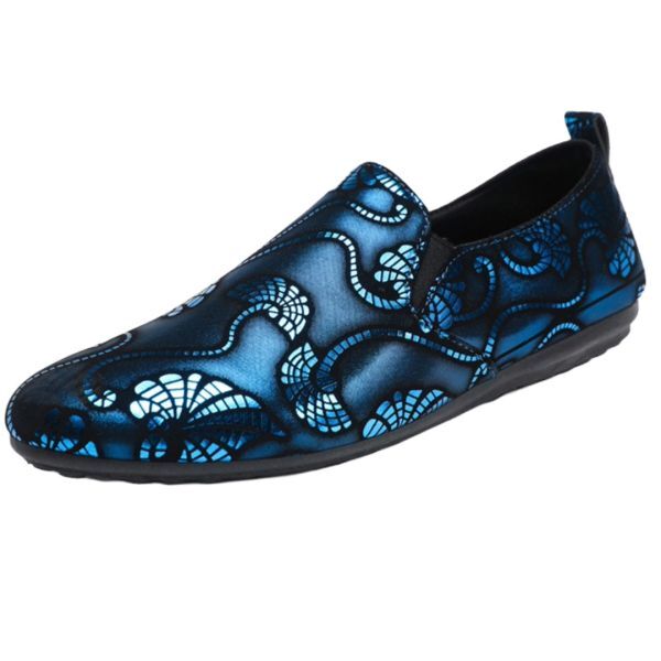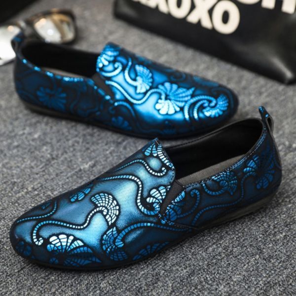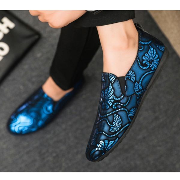 sp36 青【 27.5cm 】ドライビングシューズ エナメル モカシン 派手 花柄 メンズ 大きいサイズ 総柄 ローファー スリッポン カジュアル