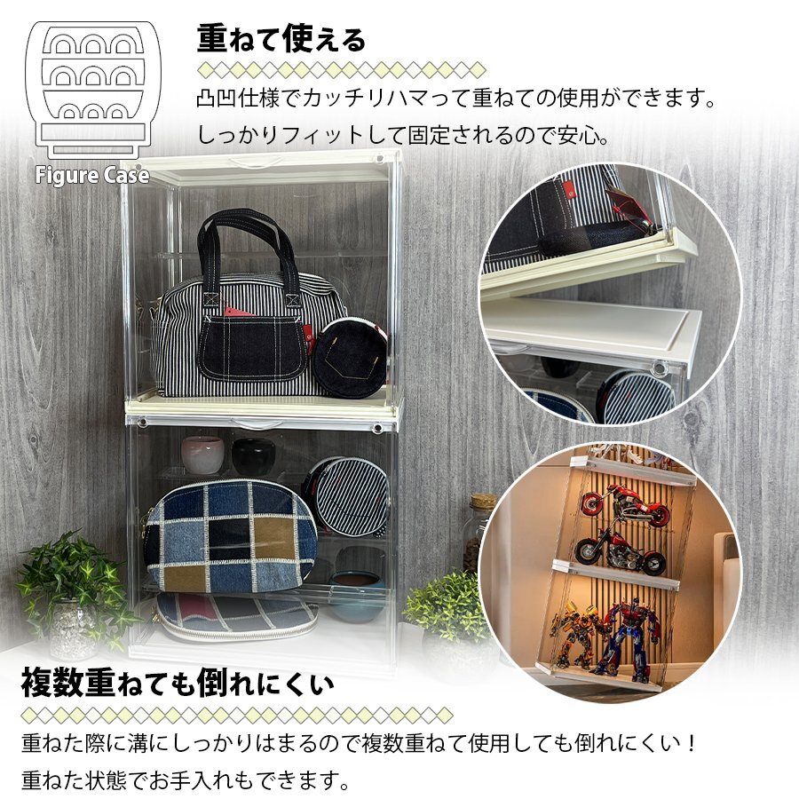 仕切り付きフィギュアケース クリアケース 趣味 収集 フィギアケース 重ねて収納 ボックス 区分80S ホワイト NP-087-WH | |||||||||||