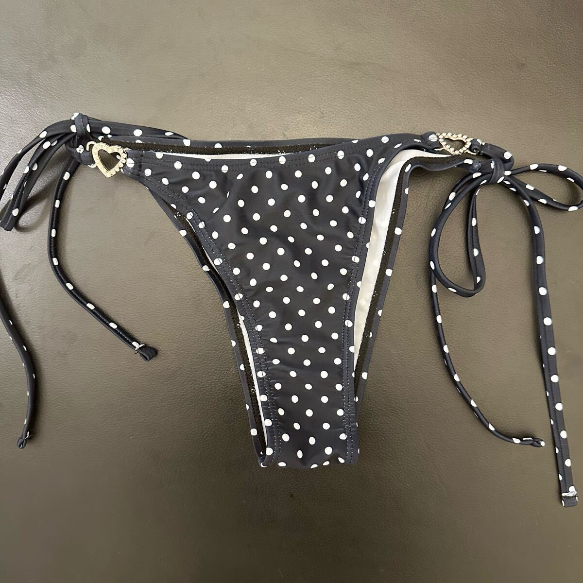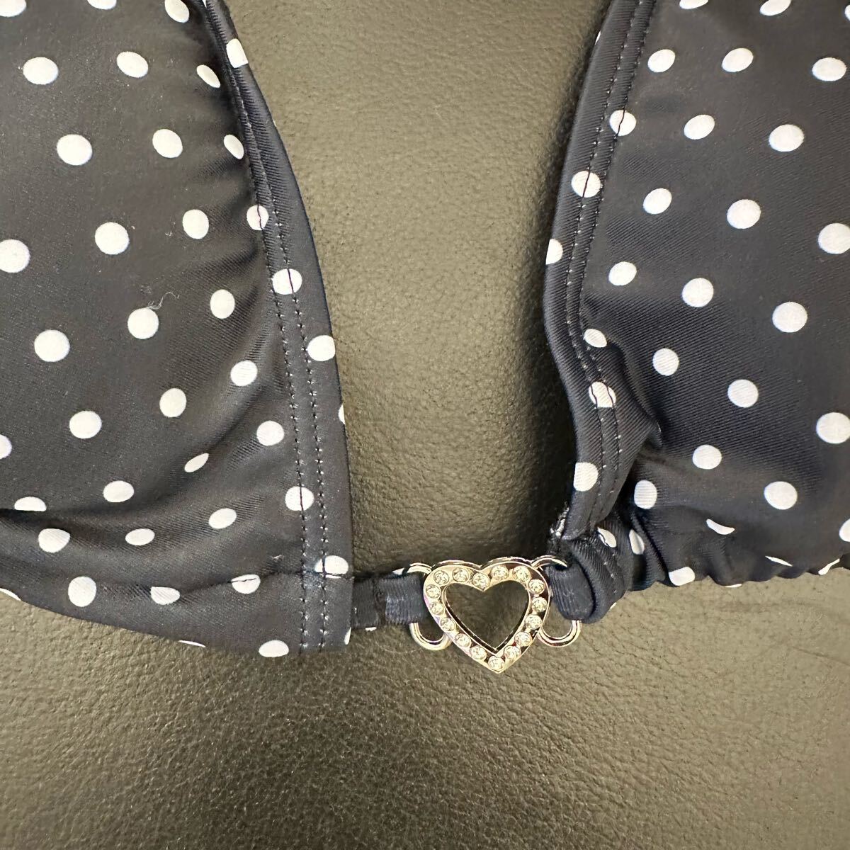 ハートチャーム付き ホルターネックビキニ 上下セット レディース水着 水玉 黒 ブラック