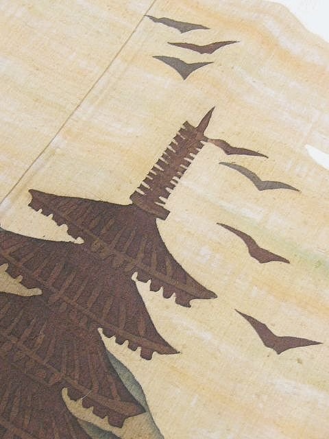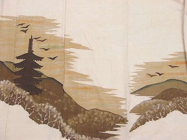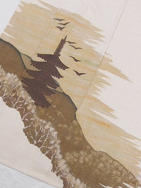 そこに山や五重の塔などの京風景のような模様の付け下げです。