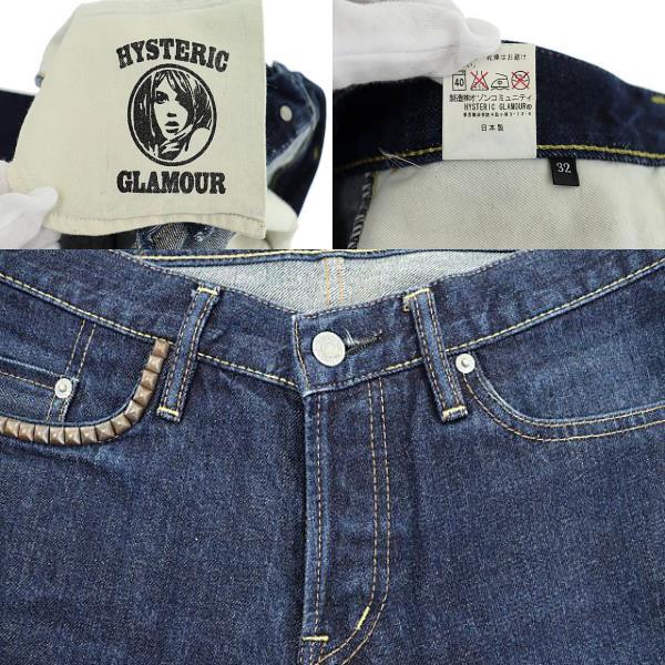 ヒステリックグラマー HYSTERIC GLAMOUR セルビッチ ストレート スタッズ デニム パンツ ジーンズ 32 インディゴ ブランド古着ベクトル 中古●250703 メンズ