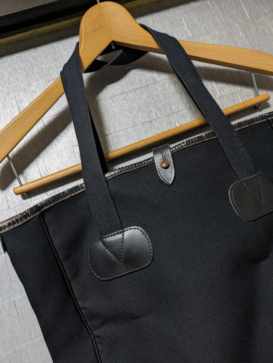 こちらは有名セレクトショップなどでの展開でもお馴染みの英国製バッグブランド、Bradyのキャンバス×本革レザートートバッグになります。 希少なイギリス製の品で、カラーはブラックになります。 サイズは高さ37cm、幅30cm、マチと底幅が10cmになります。 状態は画像でも確認できるように、縁の本革部分が所々擦れのようなシワになっております。 キャンバス地の表地のきれいさと、しっかりとした質感は変わらず健在です。 内側に部分的な薄汚れはありますが、まだまだ気にいってこれから愛用していただけるかと思います。 今回格安からのスタートになりますので、お早めにどうぞ。 お支払いはかんたん決済にてお願いいたします。