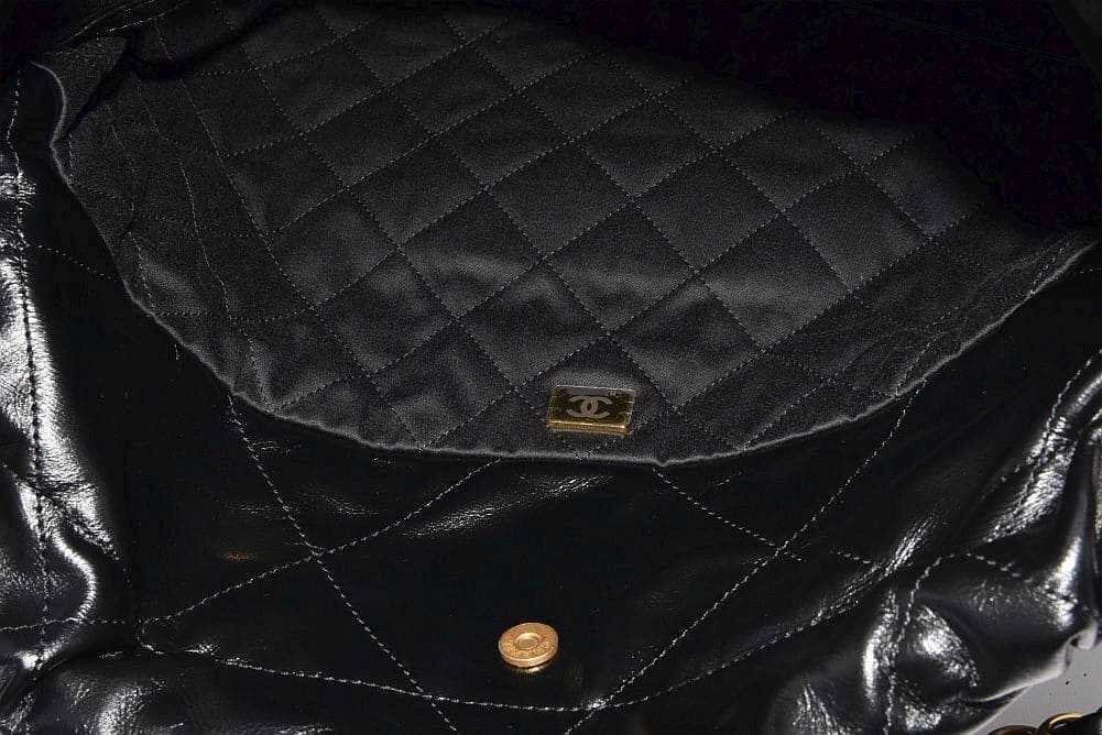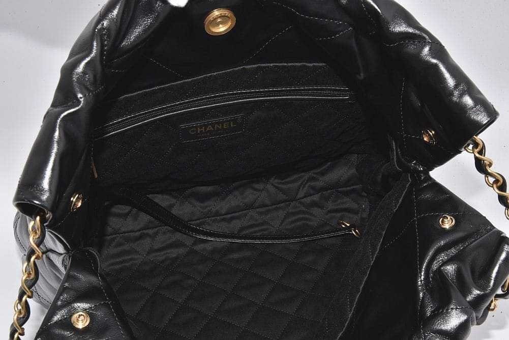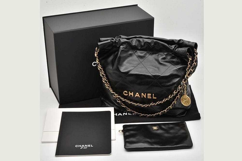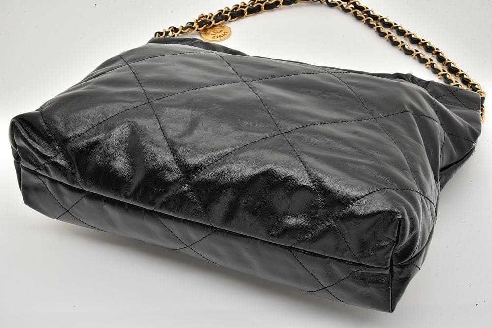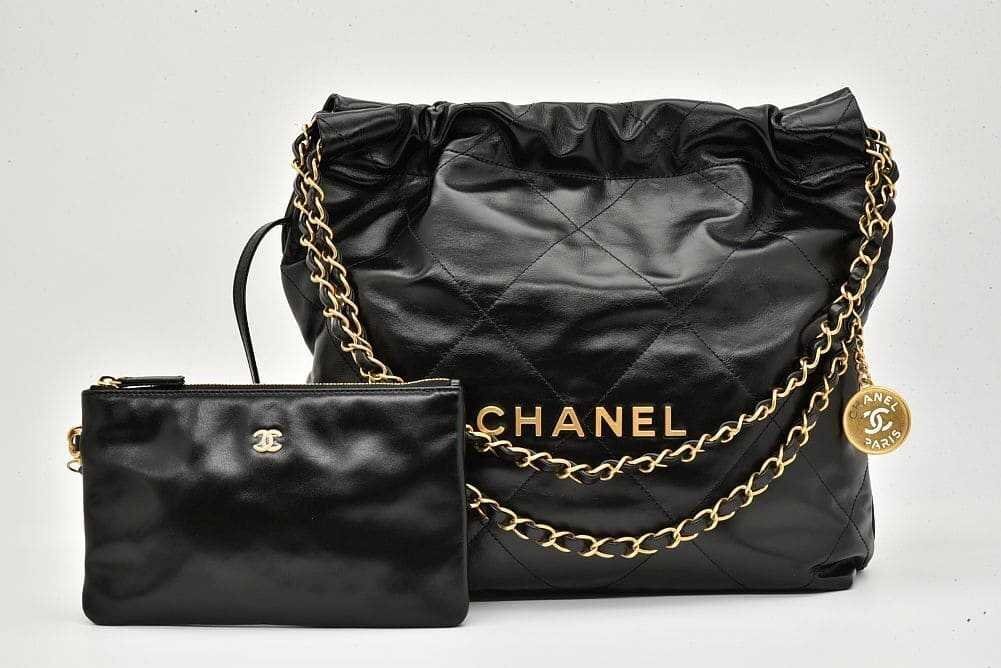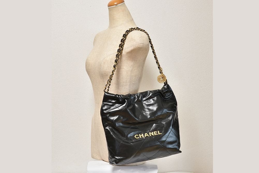 商品説明 | 艶やかなカーフスキンにCHANELロゴやチェーンショルダーがデザインされた巾着型の可愛らしいバッグ『CHANEL 22 スモール ハンドバッグ』でございます。若干の保管跡やシワが見られる箇所がございますが、未使用の商品でございます。 |
