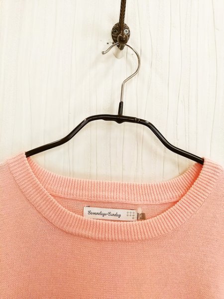 ap4870 ○送料無料 新品 (訳あり) SEVENDAYS=SUNDAY セブンデイズサンデイ ニット Mサイズ サーモンピンク 半袖 綿100% 薄手 スリット