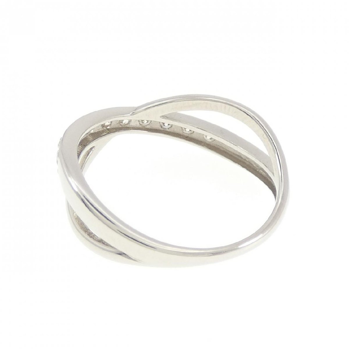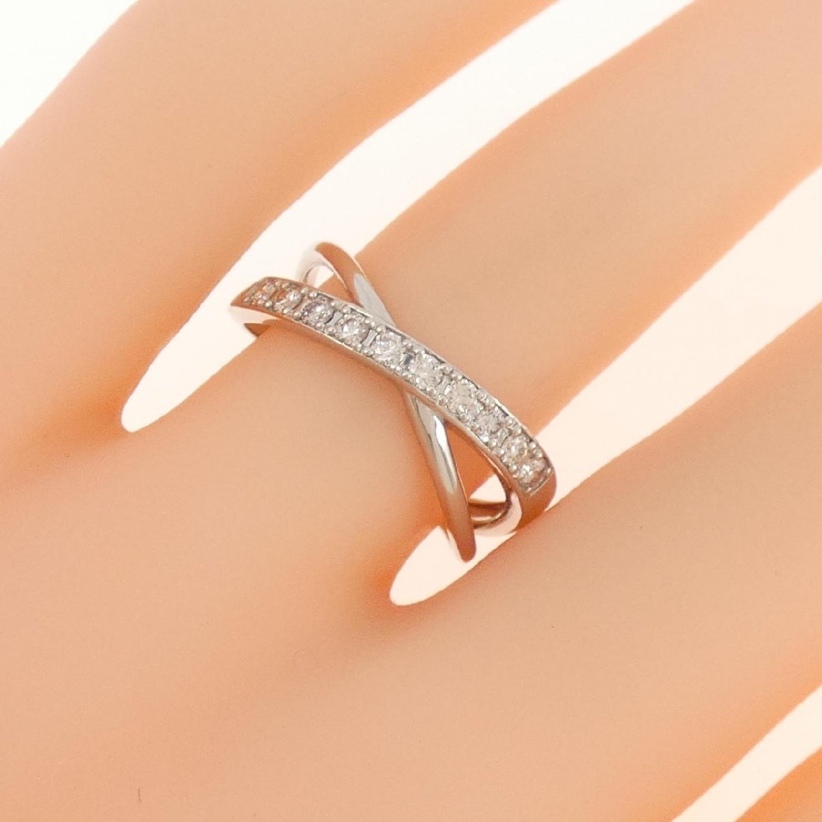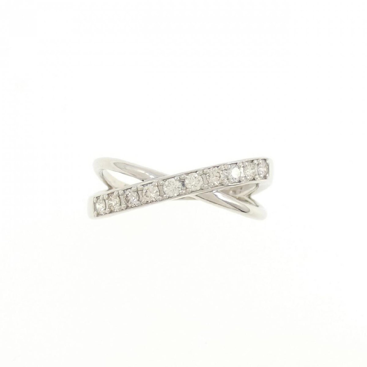 照りのあるダイヤモンドがセッティング。 センターで交差する丸みを帯びたアームが指元を品よく仕上げてくれます。