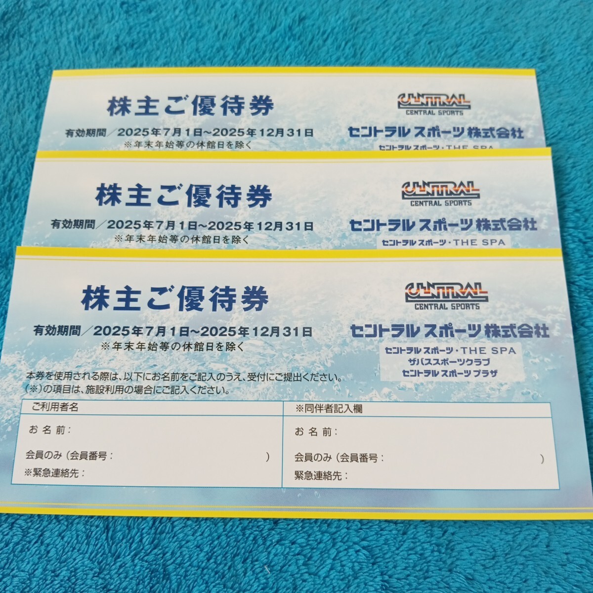 【最新・迅速対応】セントラルスポーツ 株主優待 3枚セット ミニレター対応85円 2025年12月31日まで ザパススポーツクラブ フィットネス