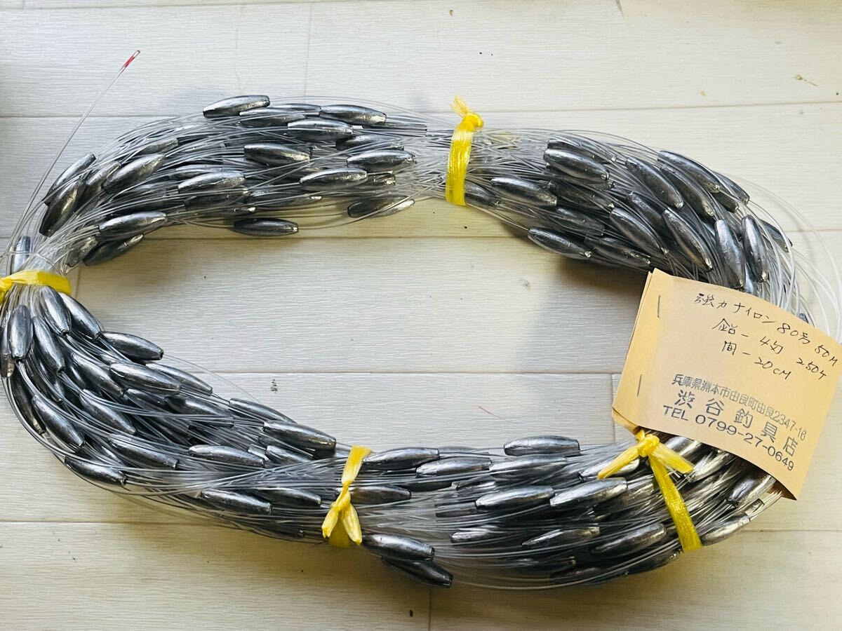 サワラ、ハマチなどのとローリング用のビショマです。強力ナイロン80号50m鉛4号250個を20cm間隔で打ってます。総重量3.6kgになります。発送はレターパックプラス全国一律600円になります。発送は木曜日以外の出荷になります。ビシ鉛落札後制作しての発送になります。