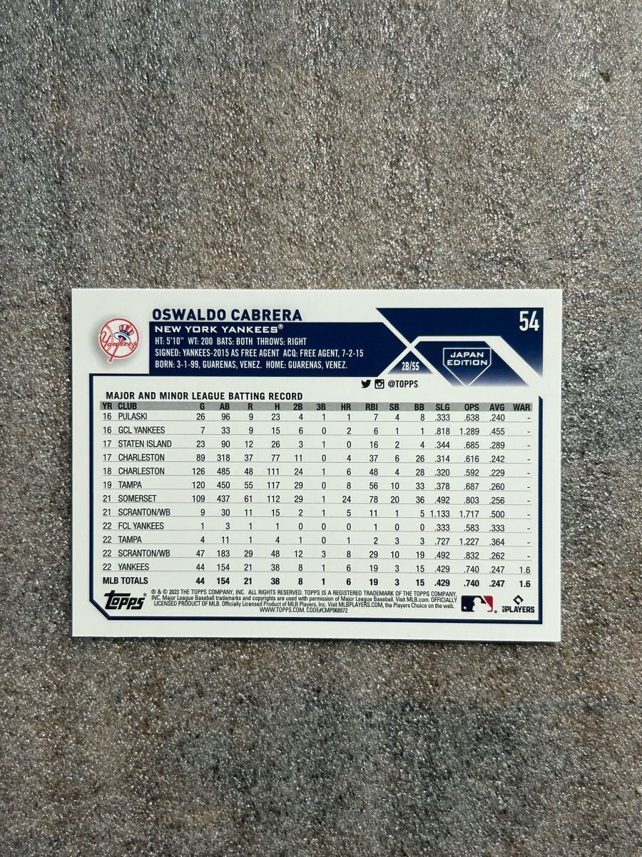 【RC】オズワルド カブレラ Oswaldo Cabrera TOPPS JAPAN MLB ヤンキース