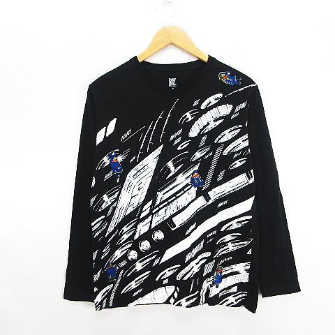 グラニフ graniph Tシャツ カットソー 長袖 クルーネック 松本零士 銀河鉄道999 車掌 刺繍 コットン M ブラック ※EKM メンズ