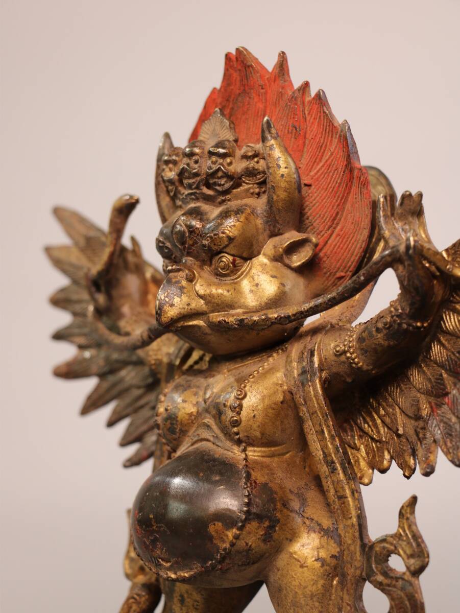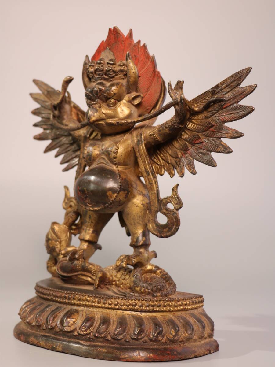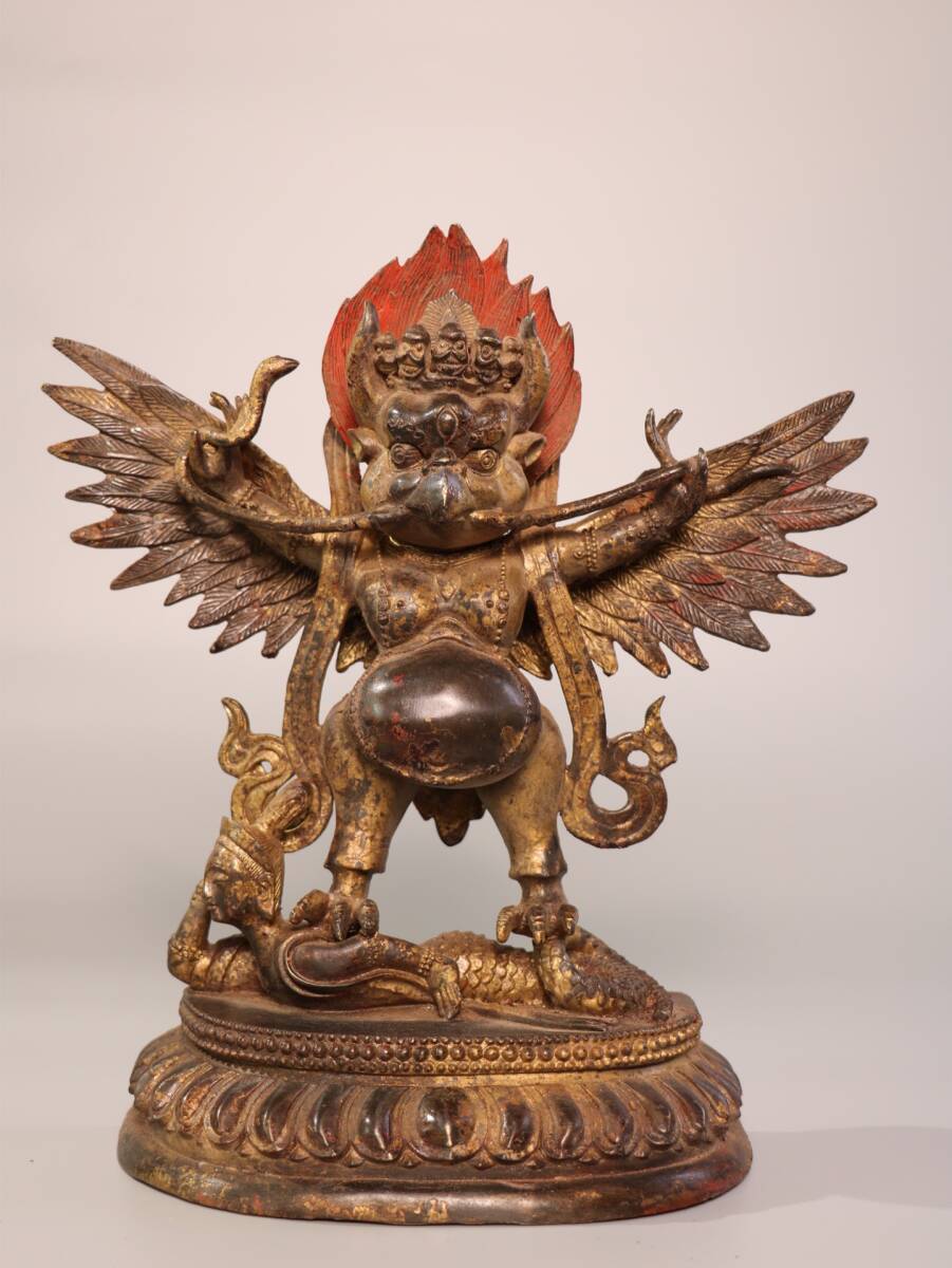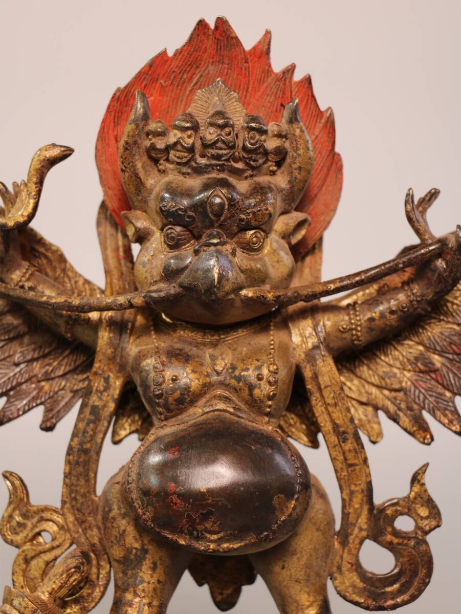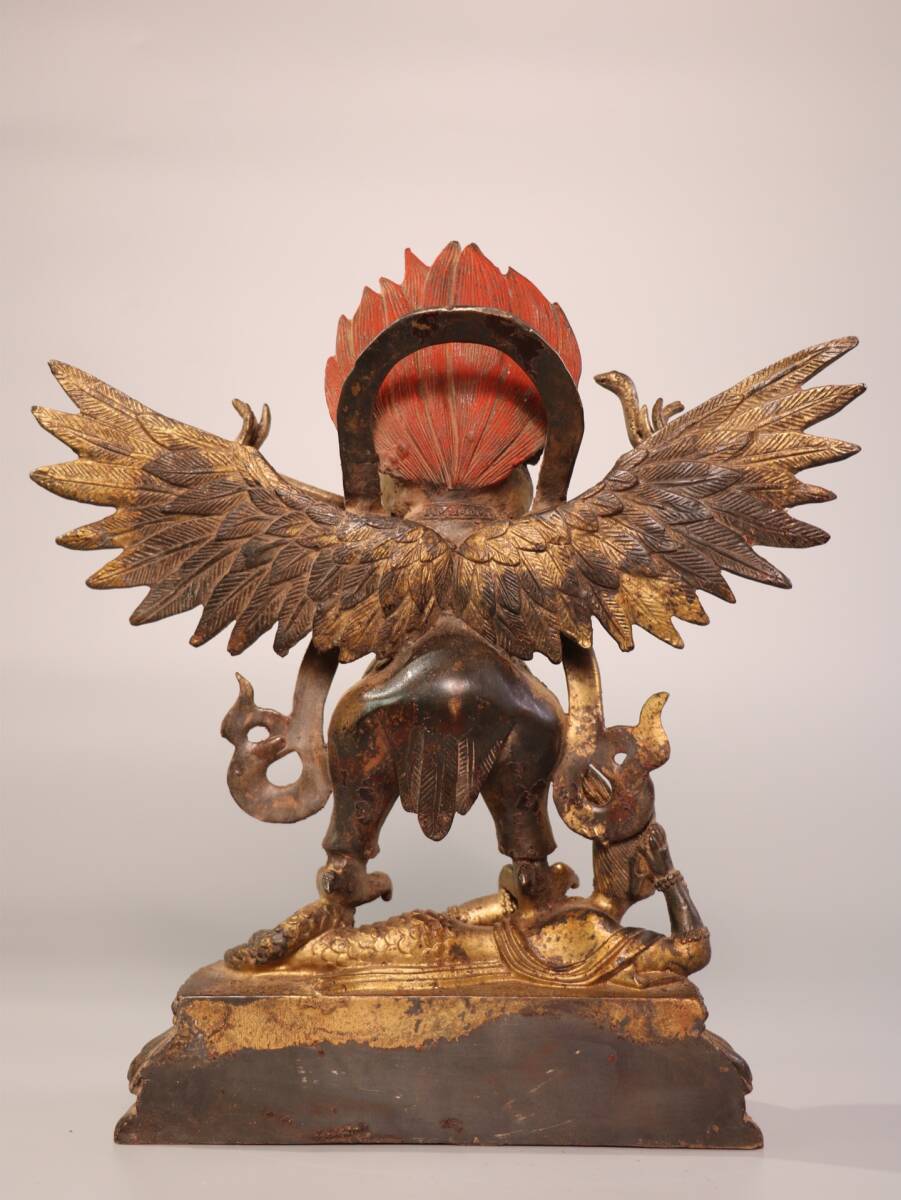『清・銅製・泥金・朱砂・金翅大鵬鳥神像・密宗密教・蔵伝仏像・供養品』極細工 置物 古賞物 中国古玩 中国古美術