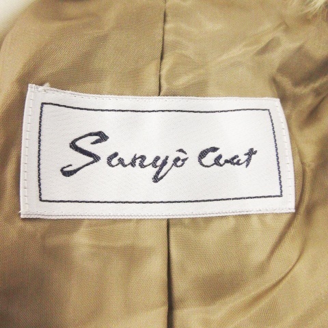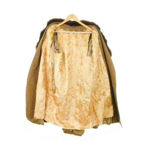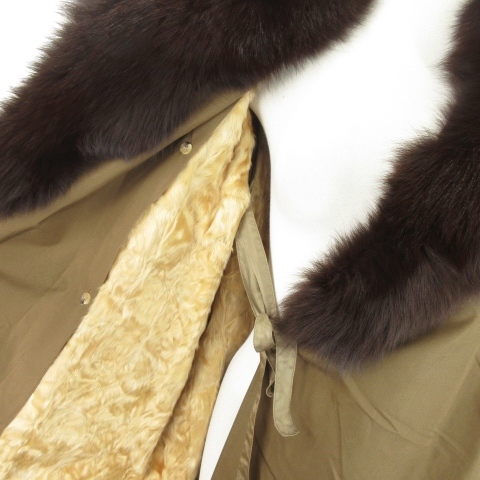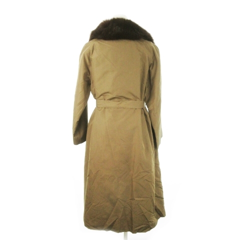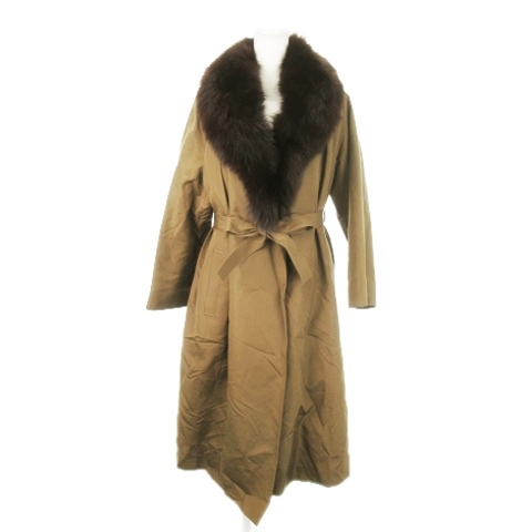サンヨーコート SANYOCOAT ガウンコート ロング シルク 絹 襟ファー ブルーフォックス 毛皮 ファーライナー ベルト 茶 ブラウン
