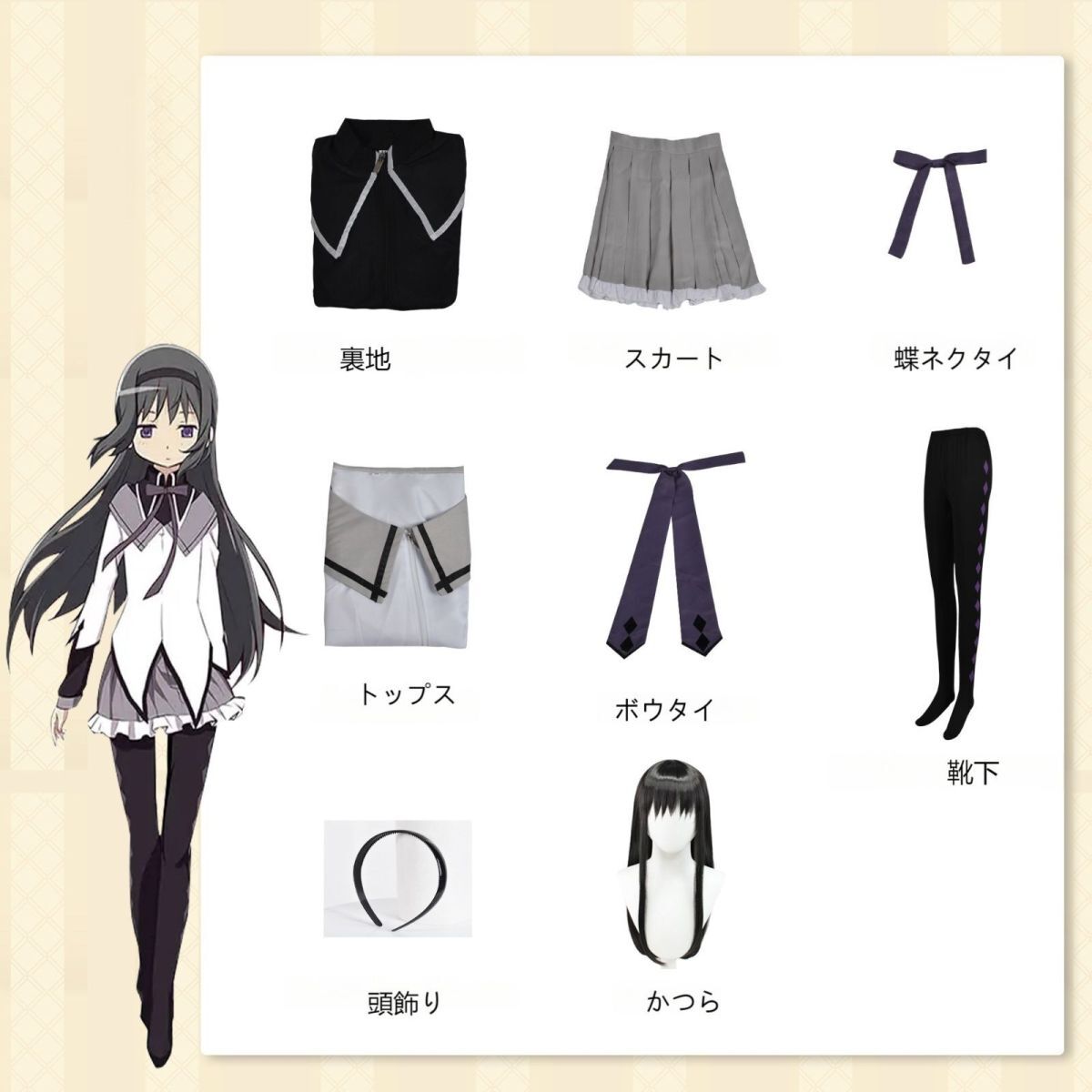 魔法少女 まどかマギカ 暁美ほむら コスプレ衣装 人気アニメ 開戦服 ウィッグ 靴下付き 仮装 変装 日常服 文化祭 祭り ハロウィ