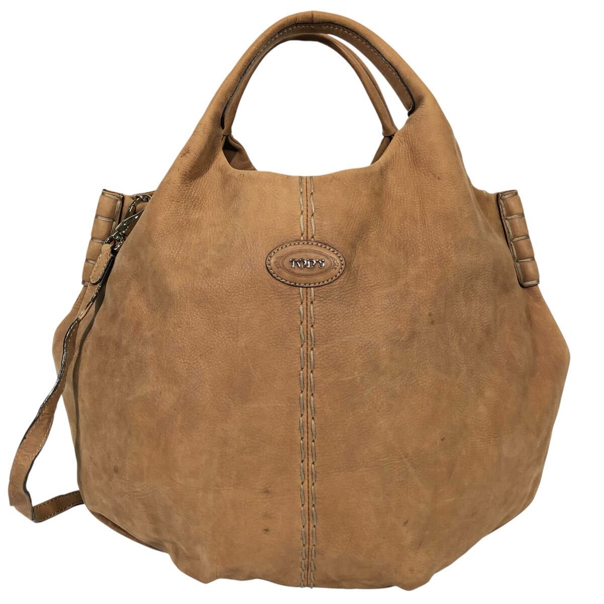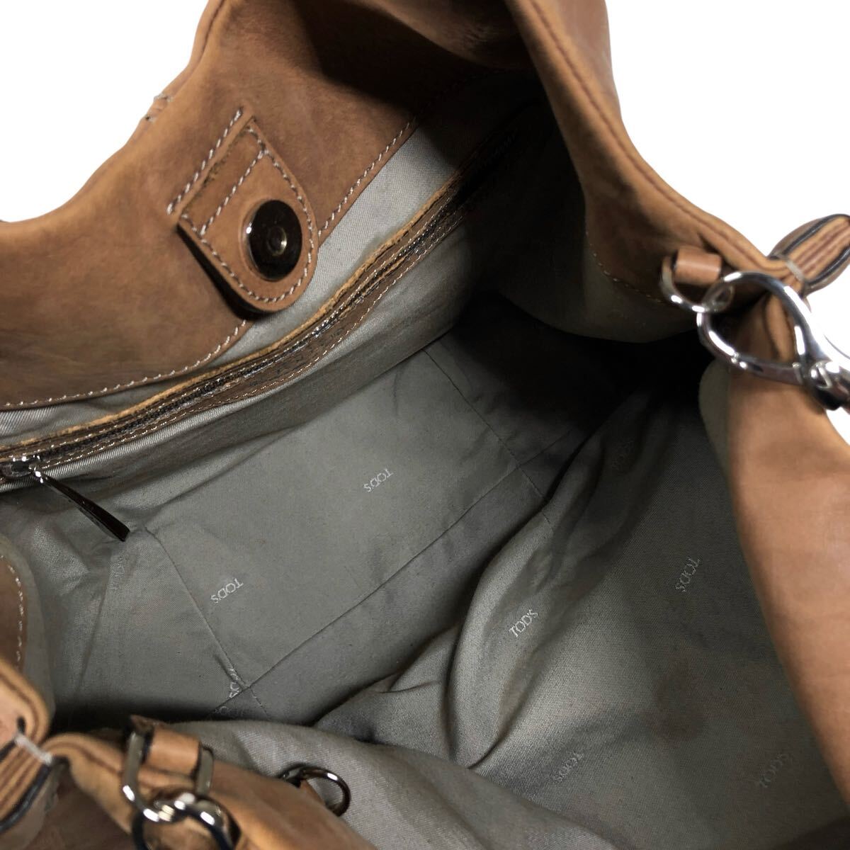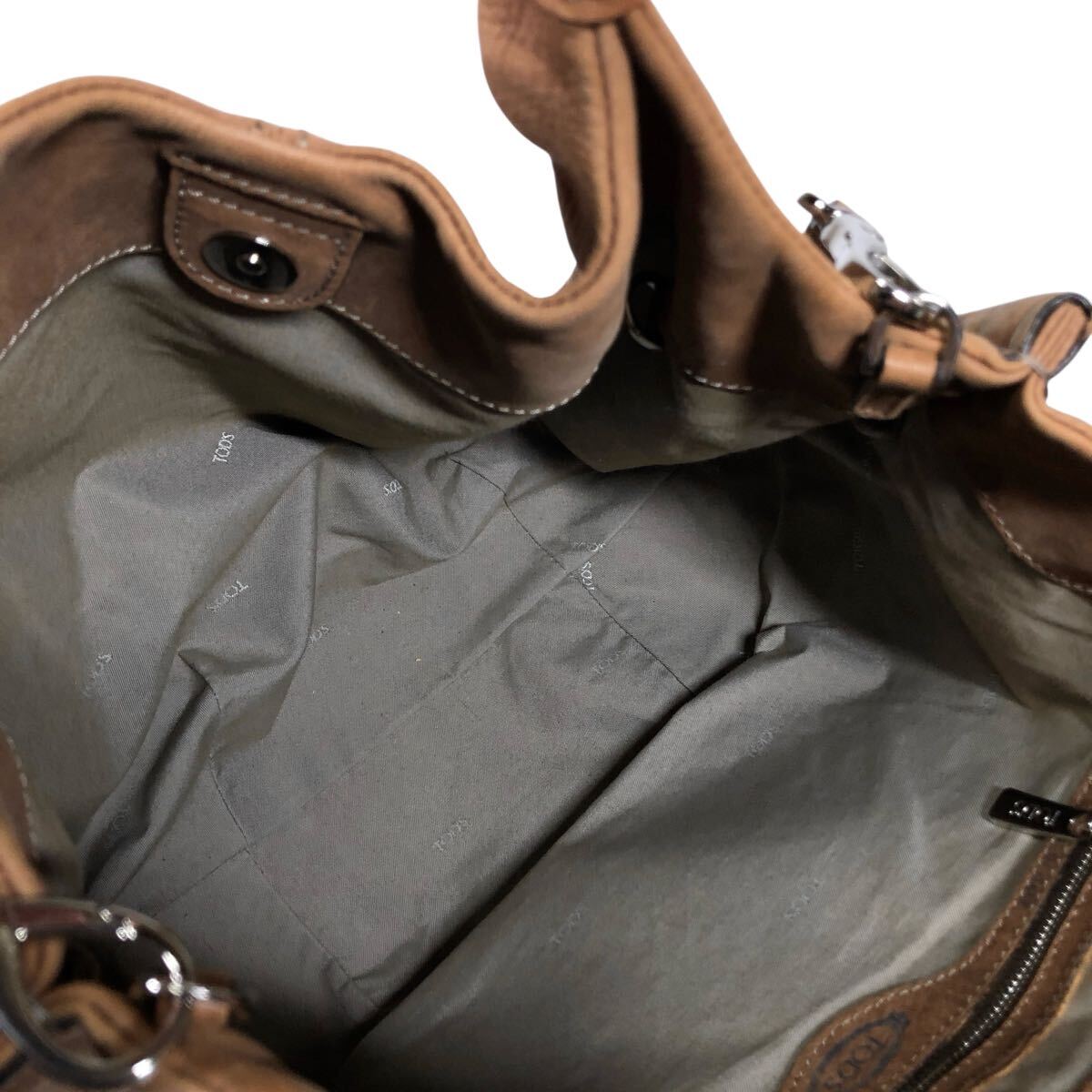 【トッズ】本物 TOD’S ハンドバッグ ロゴモチーフ 2way ショルダーバッグ ブラウン色系 ヌバックレザー メンズ レディース イタリア製
