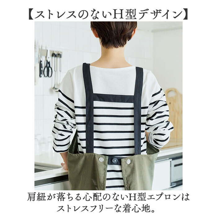 | 商品説明 | ・・【毎日の家事やお料理を楽しく♪】 ・日常使いにピッタリな「habituel 速乾エプロン」が登場。 ・【お手入れしやすい速乾生地】 ・風合いの良い綿100%の生地にクイック・ドライ加工を施した、速乾性のある機能的なエプロン。 ・【すぐに乾いていつでも快適!】 ・水で濡れてしまってもフックなどに引っかけておけばすぐに乾き、いつも快適に着用できる♪ ・【ストレスのないH型デザイン】 ・肩紐が落ちる心配のないH型エプロンはストレスフリーな着心地。 ・【サイズ調節もOK】 ・バックにはボタンが3つ付いているので服装や体型に合わせてフィット感の調節が可能。 ・【便利なポケット&機能付き】 ・フロントにはスマホが入る大きさのポケットやタオルが掛けられるループテープがあり使い勝手◎ ・【ショート丈動きやすい】 ・着用していても動きを妨げない丈感で、毎日の家事やガーデニングなど様々なシーンで活躍! |