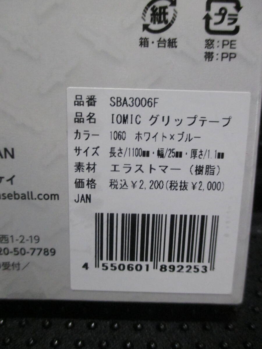 送料無料◆イオミックグリップテープ◆ホワイト×ブルー◆即納◆限定◆エラストマー◆水洗可能◆SBA3006F◆バットアイテム◆1.1mm厚さ◆