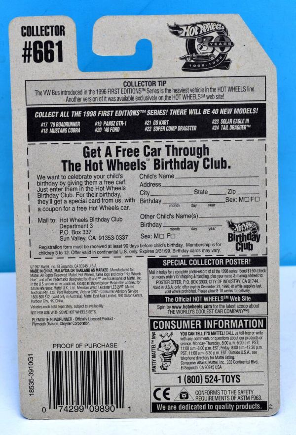 未開封 MATEL マテル Hot Wheels ホットウィール 1998年 FIRST EDITIONS '70 ROADRUNNER ロードランナー   #661