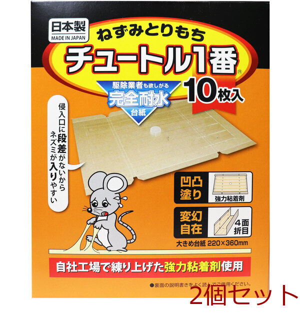 強力粘着剤で捕獲力抜群! 完全耐水台紙の凹凸塗り。 変幻自在の4面折目入り。 ・完全耐水台紙なので水にぬれても、拭き取って再度ご使用できます。 ・開いて配置、閉じて収納と簡単便利な三つ折タイプです。 ・台紙に折り目が付いているので、配置場所に応じて幅が調整できます。 ・毒性がないので一般家庭のネズミはもちろん、食品工場や倉庫、飲食店などでも安心してご使用いただけます。 個装サイズ:180X224X99mm 個装重量:約1327g 内容量:10枚入 製造国:日本 【発売元:スミス通商株式会社】 【サイズ】 大きめ台紙:220×360mm 【品質表示】 台紙本体:耐水紙 何着剤:ポリブデン 保護キャップ:PP 【使用方法】 ・1回で完全に駆除することが理想的です。 出没する場合が特定できる場合には、ネズミがよく通る通路全体に敷き詰めるように複数配置します。 ・並べる方法は規則正しく並べる方法とランダムに並べる方法があります。 どちらかを選択し、一度配置したら3日は配置を変えないでください。 ネズミは警戒心が強いのでならすためです。 ・ただし、1週間以上効果がない場合は、配置場所や並べ方を変えてみましょう。 ・配置枚数は多ければ多いほど効果的です。 ・ネズミの足がぬれていると、足跡を残して逃げる場合があります。 新聞紙を敷いた上に配置しましょう。 【注意】 ・ネズミ捕り以外に使用しないでください。 ・粘着シートは、ちり・ほこり・水・油が付着すると粘着力が低下するので注意してください。 ・人が歩く場所への配置はなるべく避けてください。 ・万一、粘着剤が手足・衣類・ペット・床などに付着した場合には小麦粉・テンカフン等をまぶして取り除くか、食用油・灯油・ベンジンなどを布に含ませ、拭き取ってください。 ・火気を避け、子供の手の届かない場所に保管してください。 ・捕えたネズミは台紙と共に、速やかに処理してください。 ・未使用の台紙を保管する時は、台紙中央に置いてある保護キャップがずれる場合がありますので、必ず広い幅面を底にして保管してください。 ・台紙の性質上、油シミの出る場合がありますが、品質や使用に際して問題ありません。 注意事項 予告なく成分・パッケージが変更になることがございます。 予めご了承ください。 *予告なく成分・パッケージが変更になることがございます。予めご了承ください *ダンボールを使用して発送する場合には、入数以下の個数の場合、 中古ダンボールを使用する場合があり、ご注文の商品とは異なるダンボールになる場合があります。 あらかじめ、ご了承ください。 |
