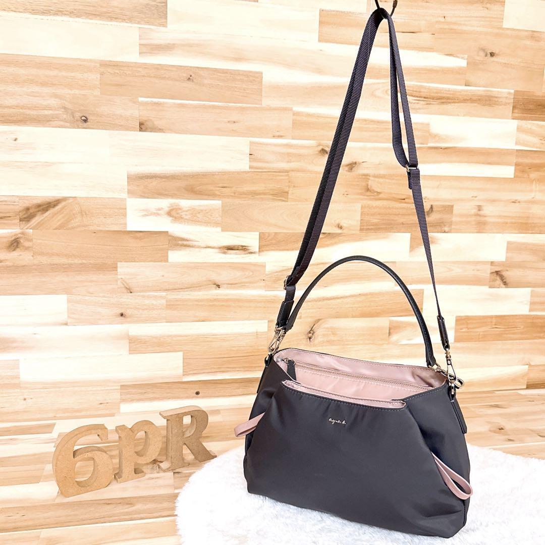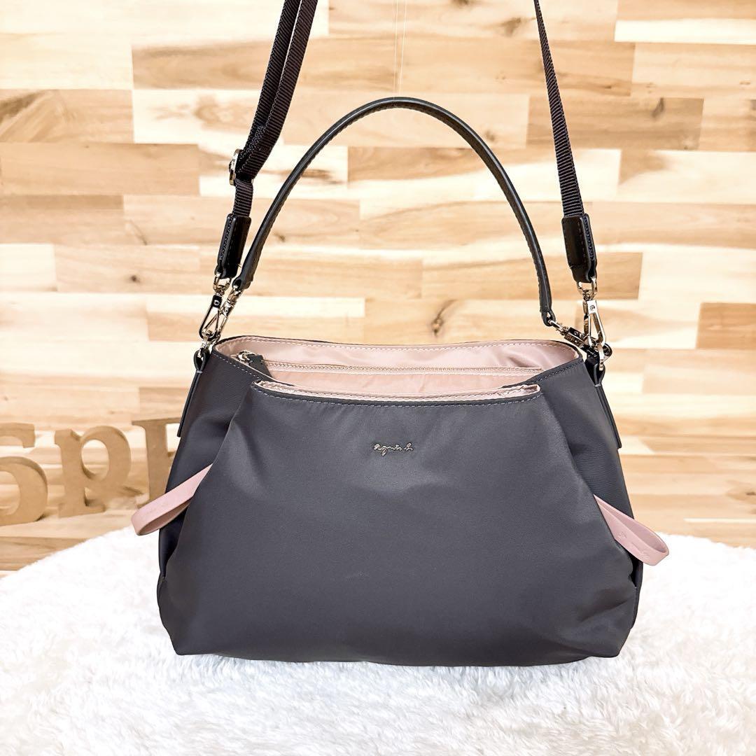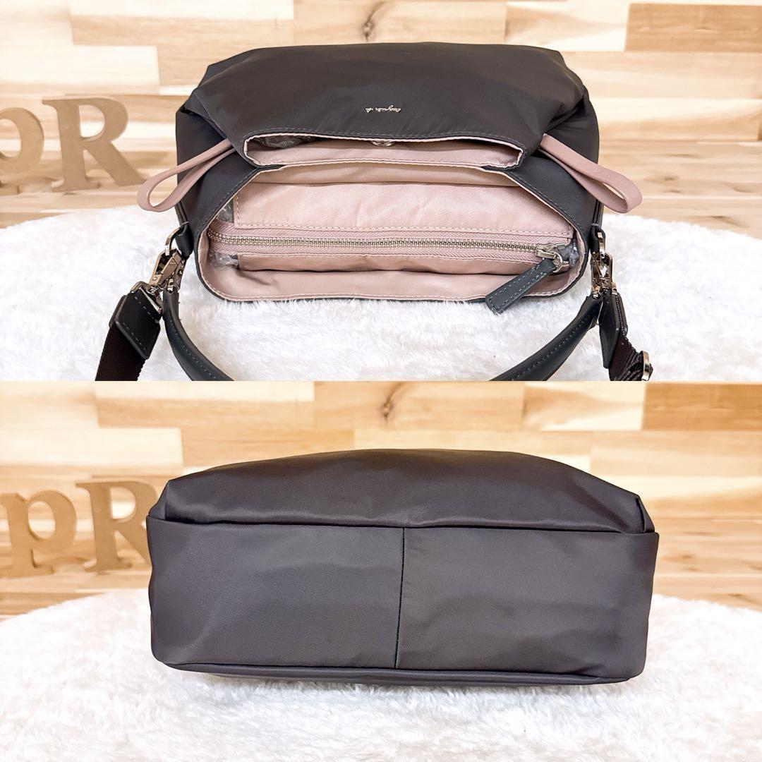 程良く滑らかなナイロン生地で仕上げたグレーカラーにくすみピンクを合わせ、都会的で品のある印象とほんのり甘さを添えた大人可愛いルックス。コロンとしたサイズ感とカラーリングで、ほっこりとした優しい雰囲気のあるagnes b.のショルダーバッグです。