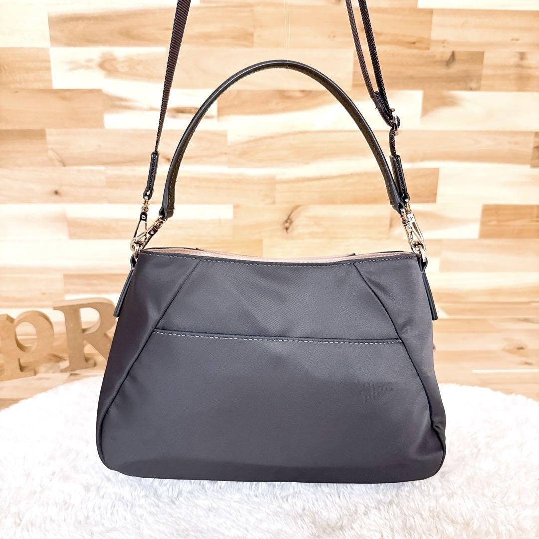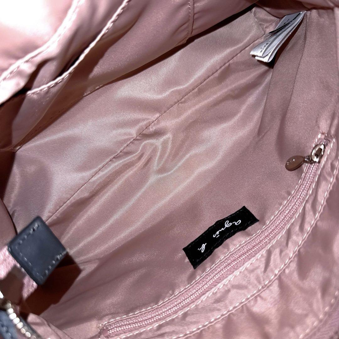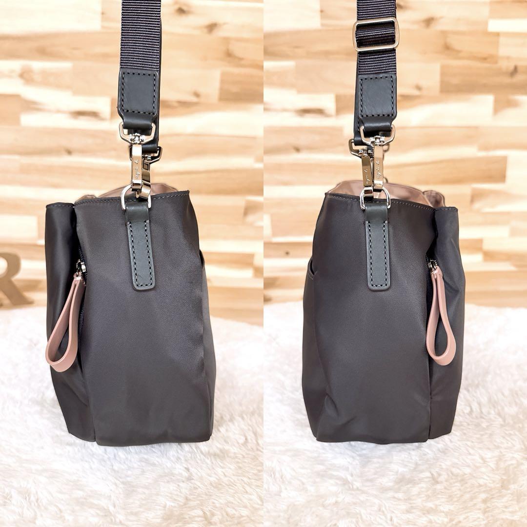 程良く滑らかなナイロン生地で仕上げたグレーカラーにくすみピンクを合わせ、都会的で品のある印象とほんのり甘さを添えた大人可愛いルックス。コロンとしたサイズ感とカラーリングで、ほっこりとした優しい雰囲気のあるagnes b.のショルダーバッグです。