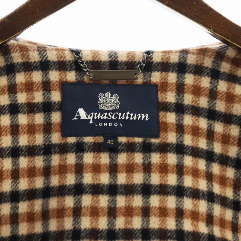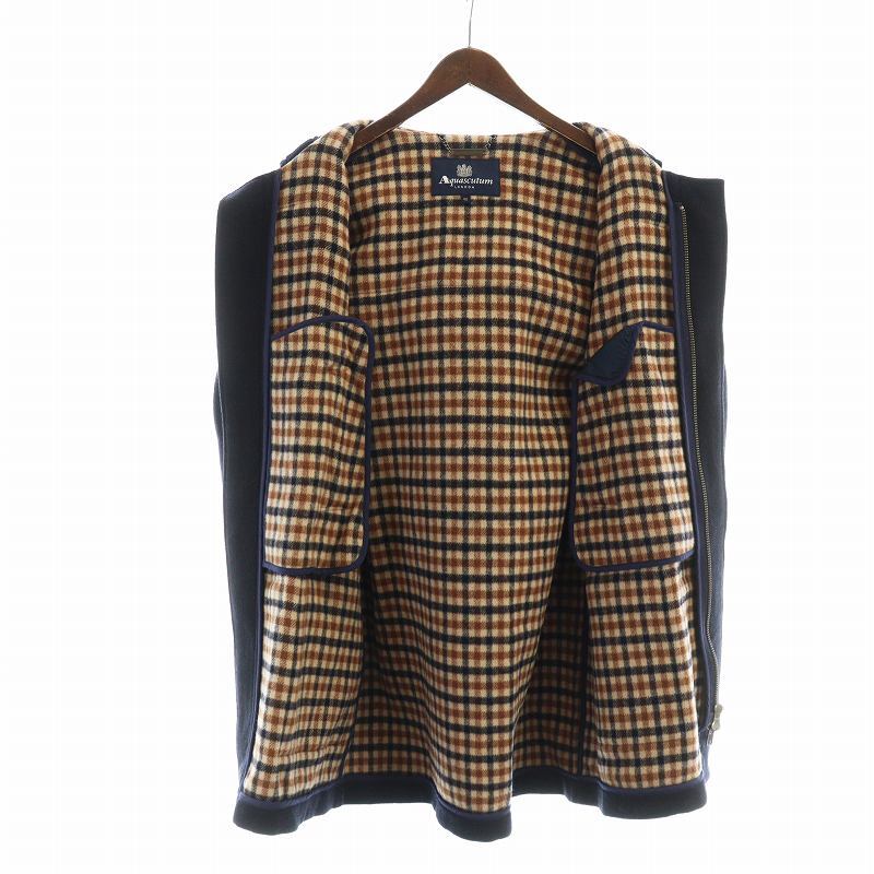 アクアスキュータム AQUASCUTUM ダッフルコート ロング 長袖 総裏地 トグルボタン メルトン フード 40 XL 紺 ネイビー