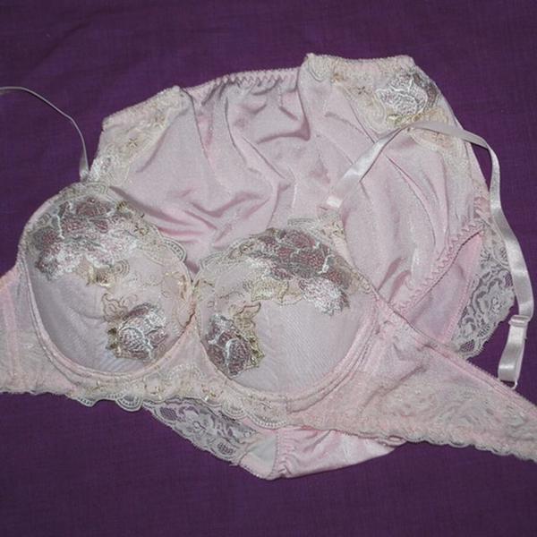 D75L 産前授乳 ワンタッチオープン 華やか薔薇刺繍ブラ&ショーツ マタニティ ラメピンク