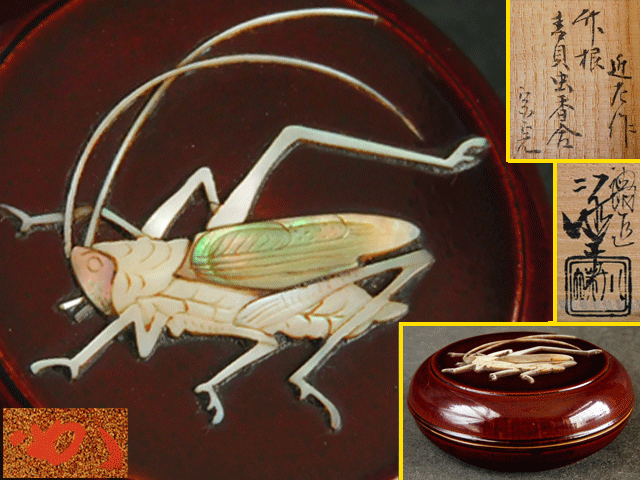 表千家 堀内 宗完 青貝虫 竹根 香合 塗師 川端 近左 内梨地 二重箱