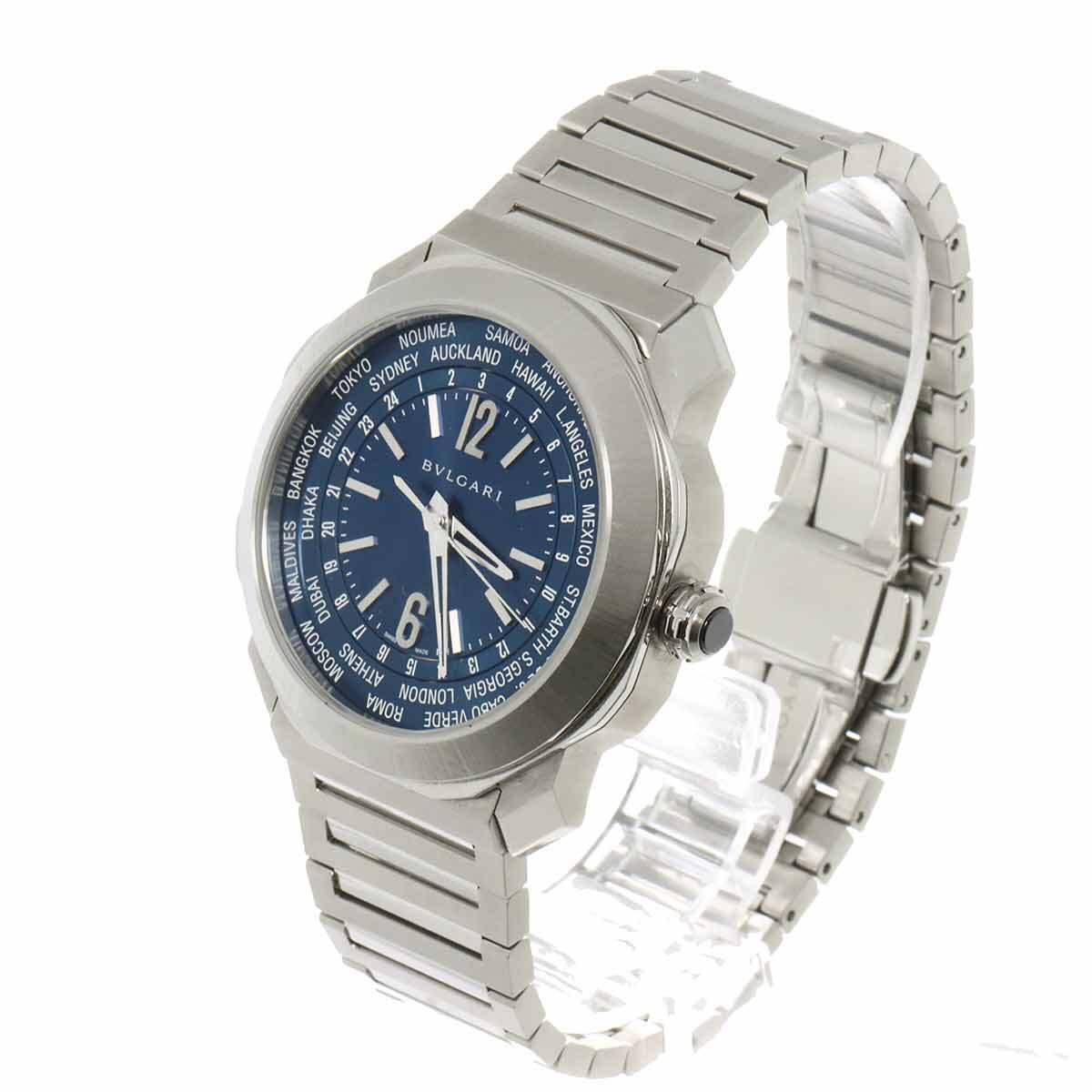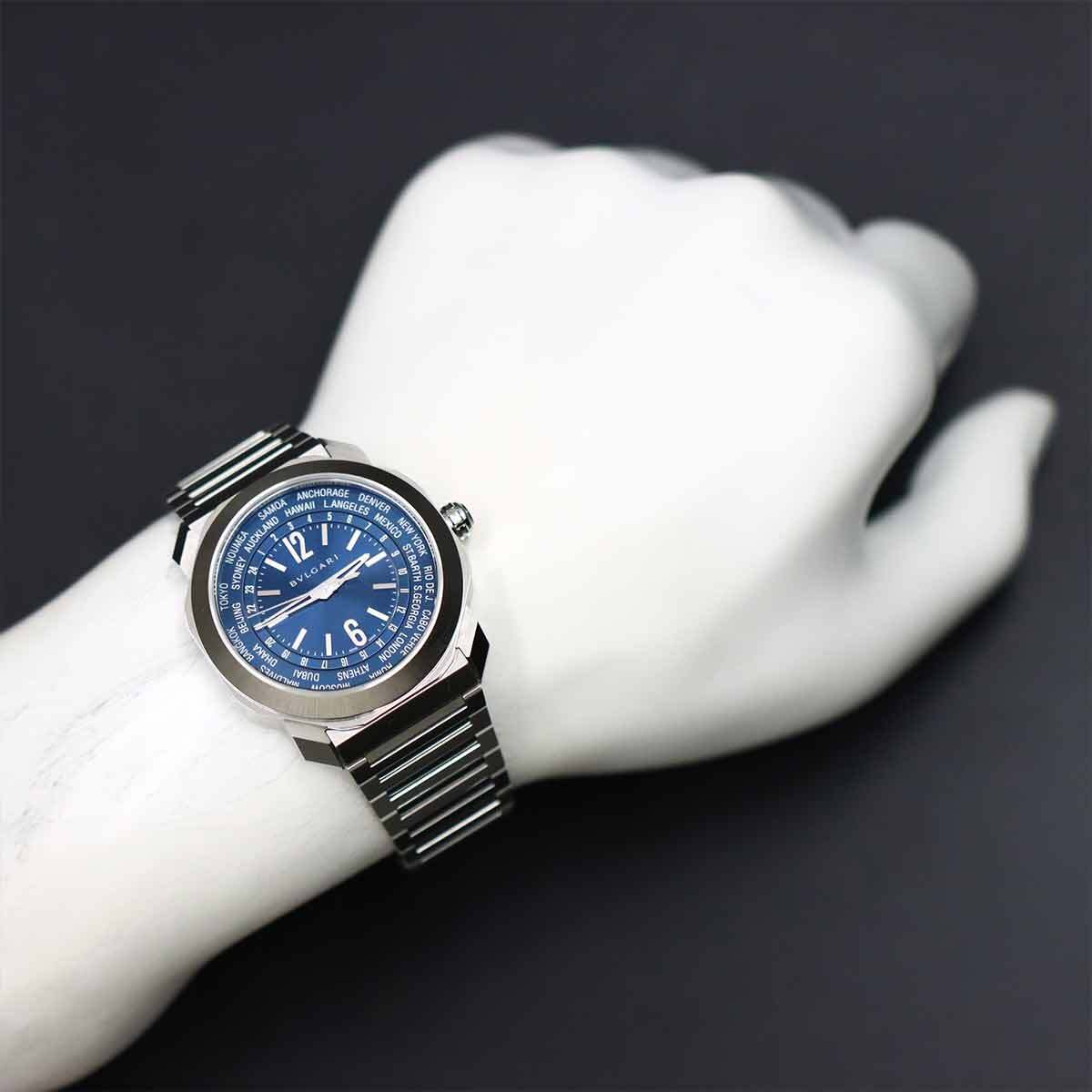 | 商品概要 | ブルガリから、ラテン語で「8」を表すモデル名の通り、個性的な8角形のケースフォルムが特徴の『オクト ローマ』です。ワールドタイム表示機能搭載のブルーの文字盤がシンプルでお洒落な逸品です。 |