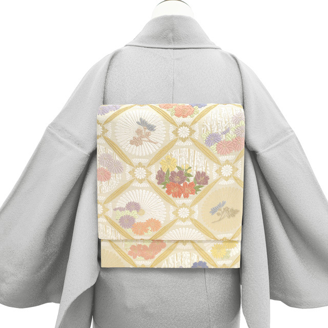 こちらの帯は、10~5月( 秋 ・ 冬 ・ 春 )の袷の お着物 に合わせていただけます。