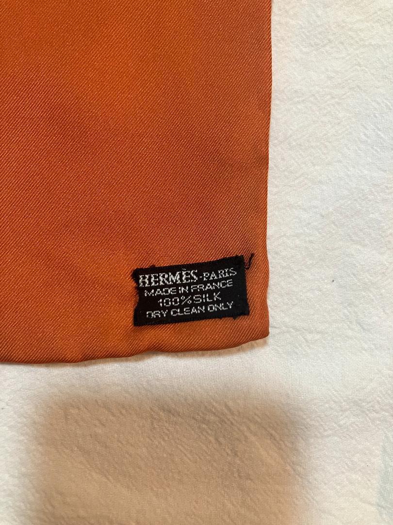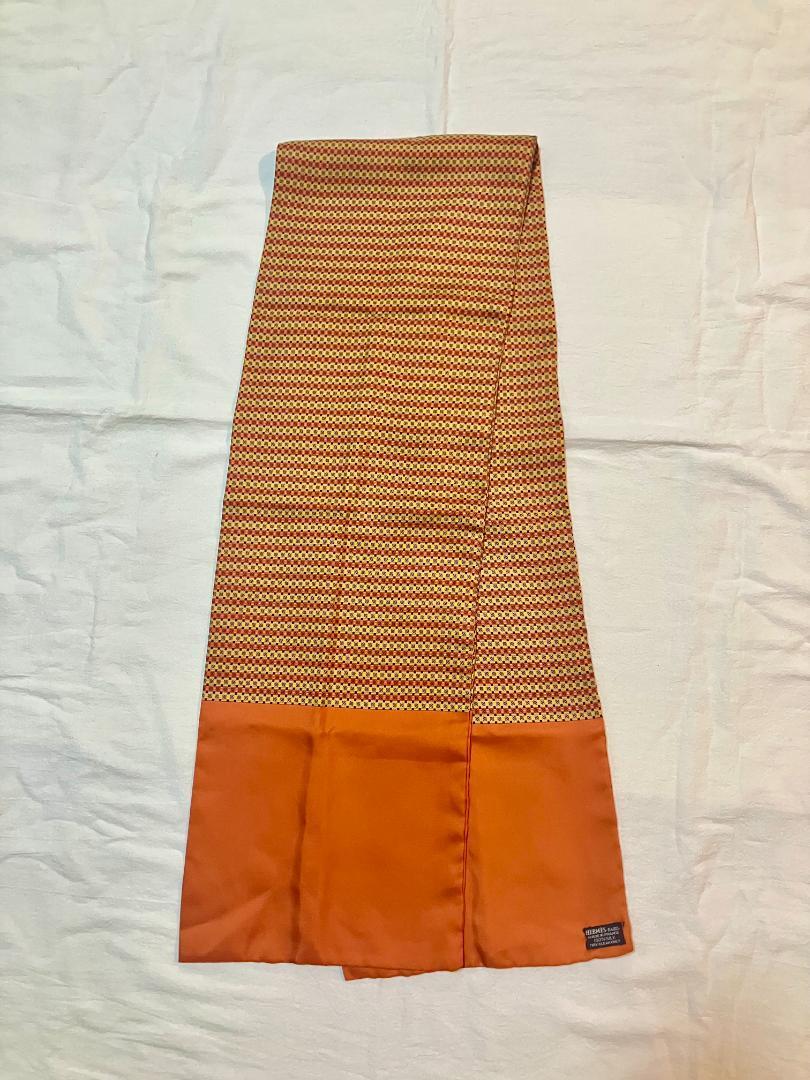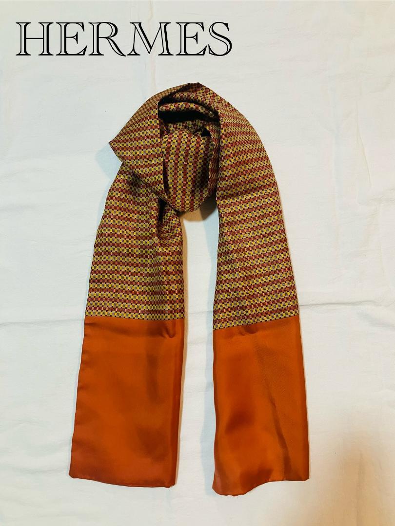 HERMES エルメス シルク100% スカーフ ストール マフラー メンズ レディース オレンジブラウン系になります。