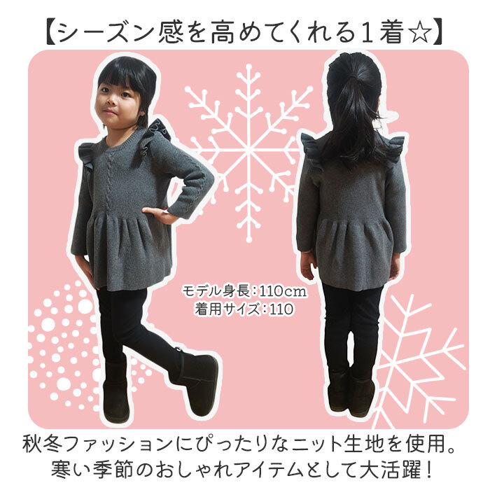 | 商品説明 | ・・【お出かけ着から普段使いまでOK♪】 ・フリル×ニットのほっこり仕上げ☆「ベビー ニットワンピース」が登場。 ・【シーズン感を高めてくれる1着☆】 ・秋冬ファッションにぴったりなニット生地を使用。寒い季節のおしゃれアイテムとして大活躍! ・【チクチクしにくい優しい肌触り】 ・お子様の敏感なお肌にも優しい、チクチクしにくいコットン生地使用。柔らかな着心地◎ ・【こなれ感のある可愛さが魅力】 ・フリルとケーブル編みデザインがポイント☆華やかだから、特別なお出かけにもぴったり! ・【一目置かれるシンプルデザイン】 ・柄やカラフルな物が多い子供服だから、シンプルなデザインが嬉しい☆ママパパもにっこり。 ・【元気に動ける!のびのびストレッチ】 ・伸縮性に優れた生地で、締め付け感が少ない!元気なお子様の動きを邪魔せずストレスフリー! ・【スポっと被るだけの簡単着用】 ・頭からスポっと被ればお着替えが完了!背中のボタンも同色で、上品な印象に♪ |