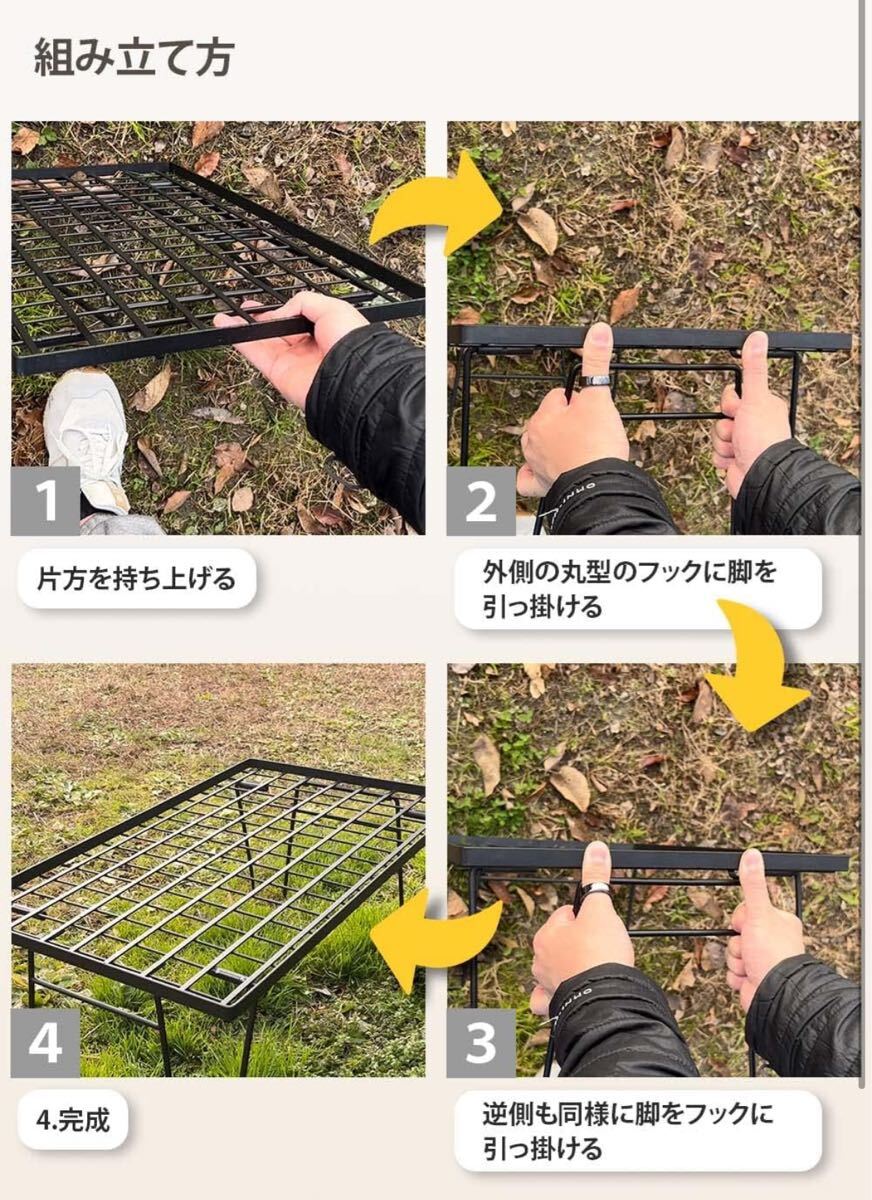 この折りたたみフィールドラックは、バッグに収納できるので無駄な手荷物を増やしません。軽量の為どこにでも持っていける。キャンプ、旅行、ハイキング、バックパッキング、釣り、海上、長距離の遠征、屋外生活、等様々な状況下で便利な折りたたみ式フィールドラック。