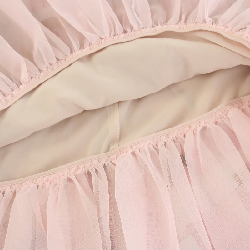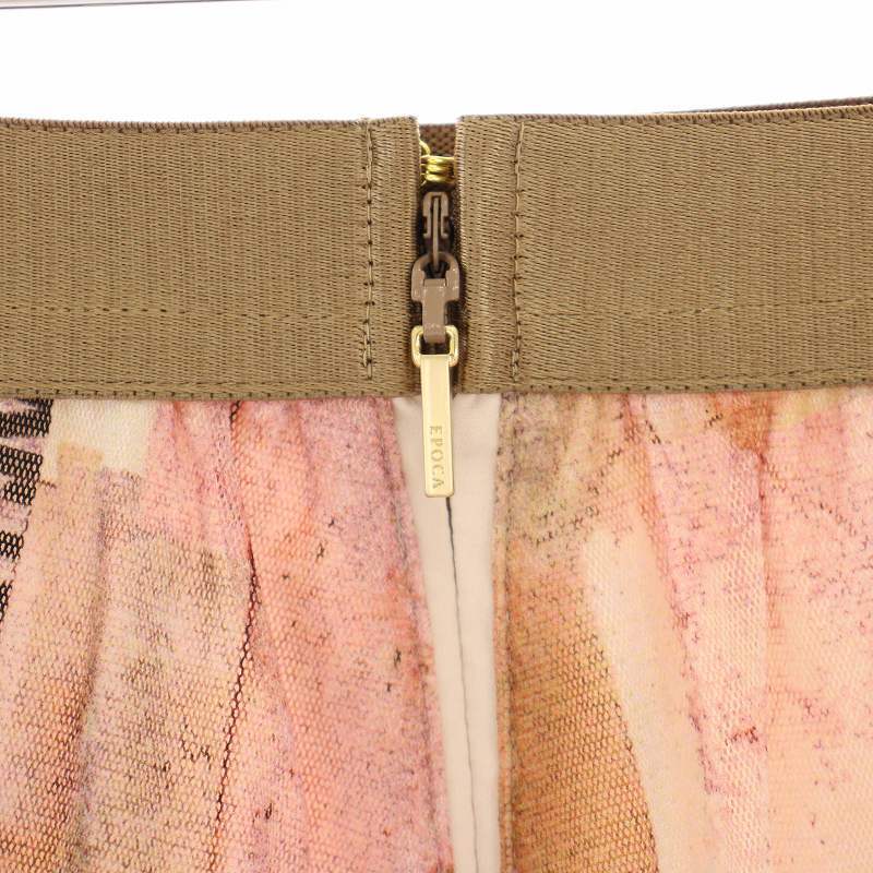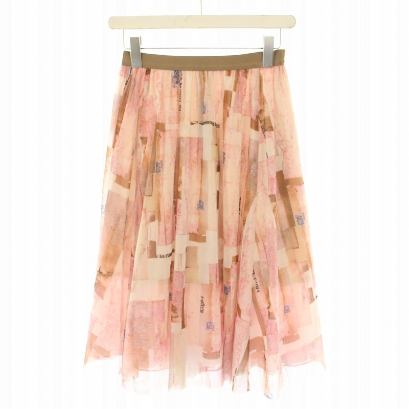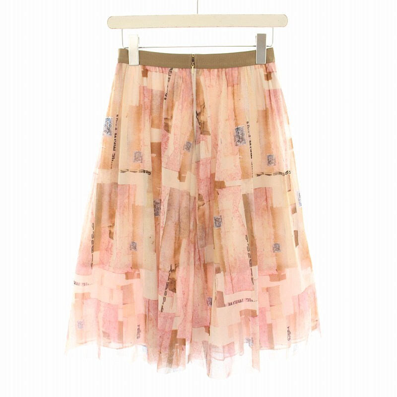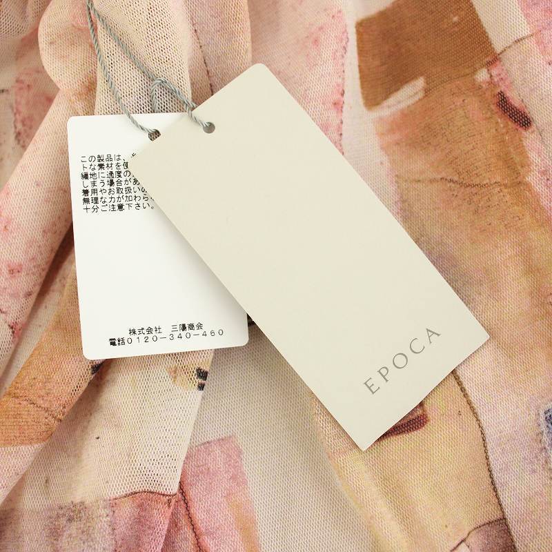 未使用品 エポカ デコラージュプリントチュールスカート ひざ丈 フレア イージー 総柄 タグ付き 38 ピンク M5S02-801-12 レディース
