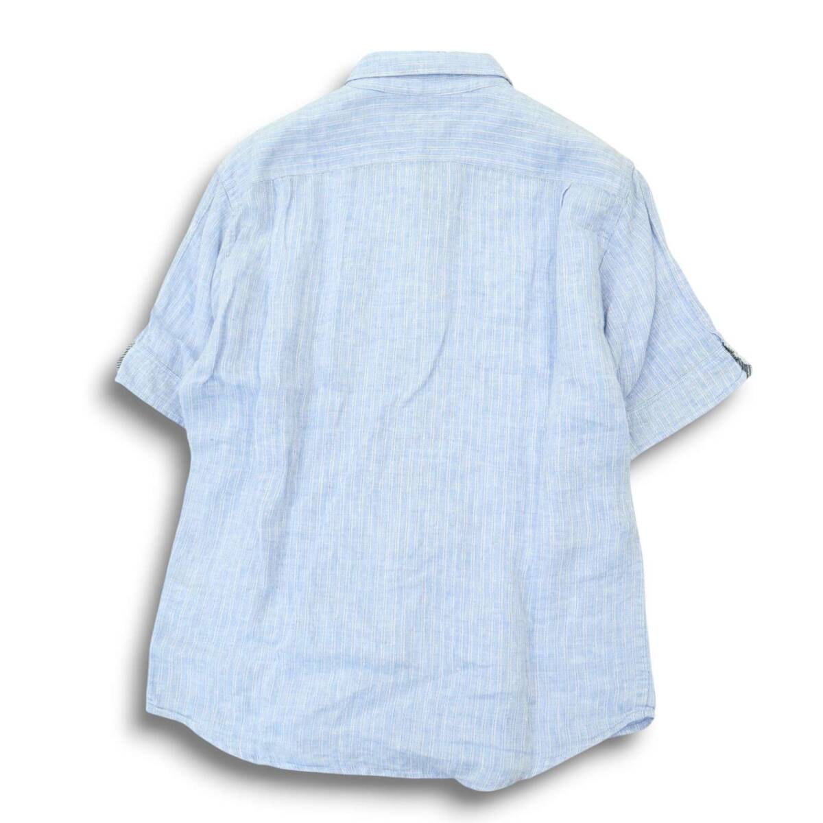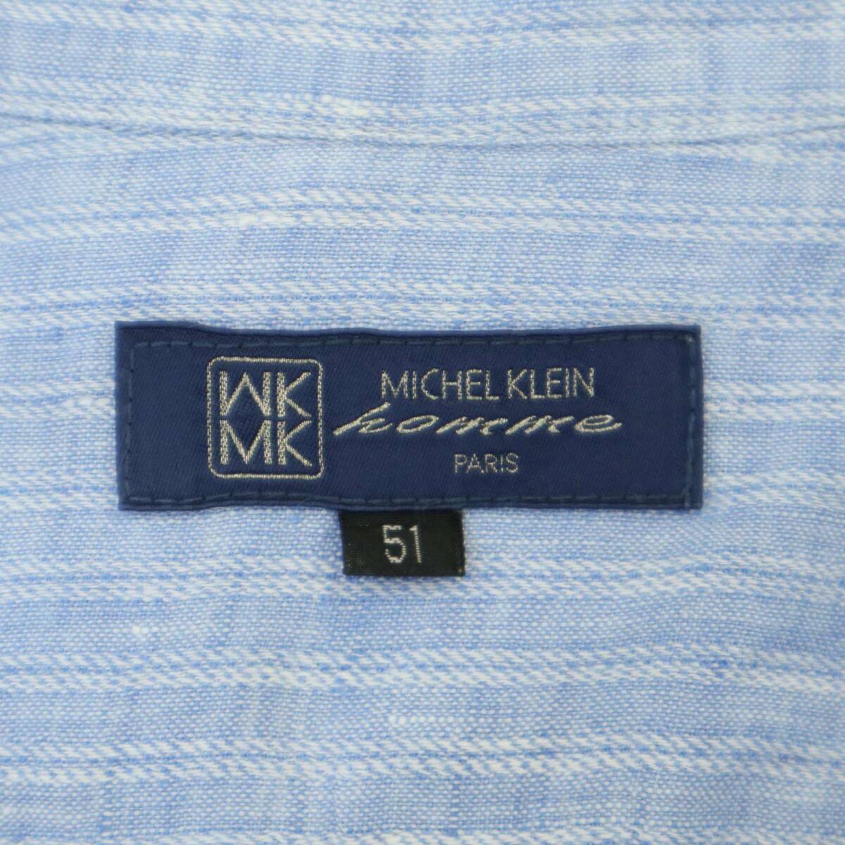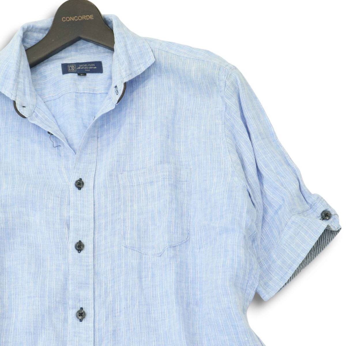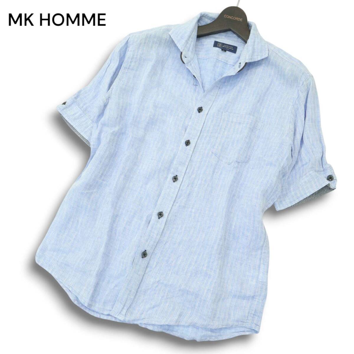 MK HOMME ミッシェルクラン オム 春夏 麻 リネン100%★ 半袖 ストライプ シャツ Sz.51 メンズ