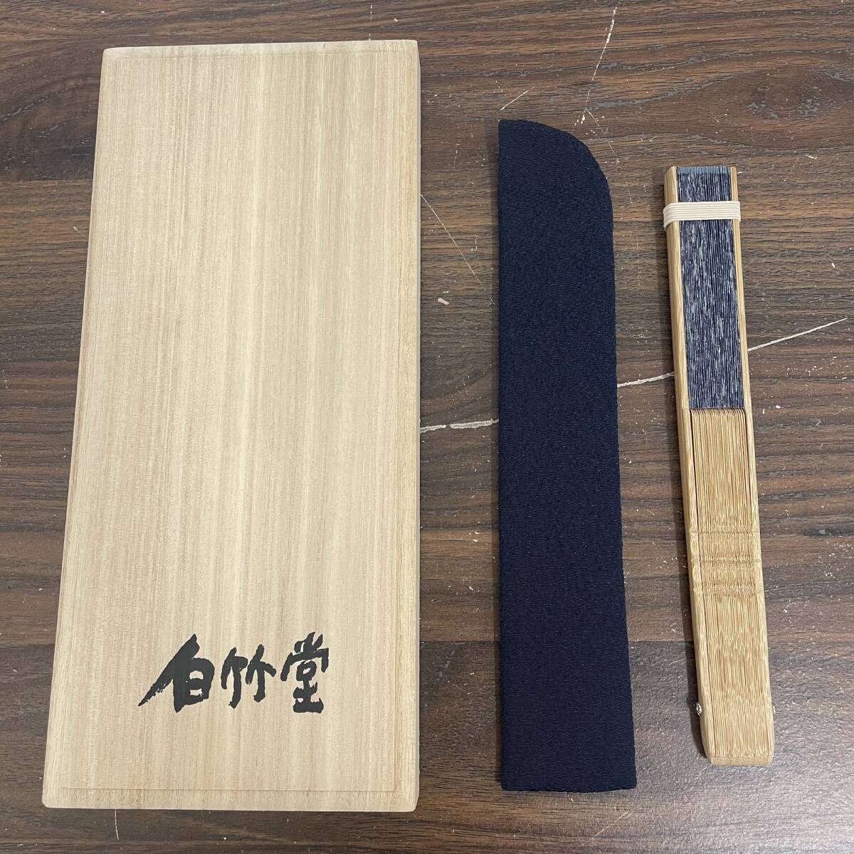 ★未使用★5点セット 白竹堂 扇子 落水和紙  紺  収納袋・箱有 はくちくどう  京都 和装小物 着物 管4722