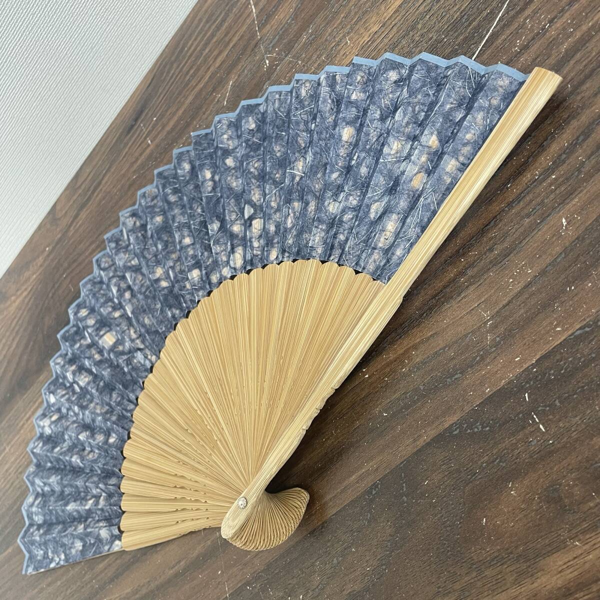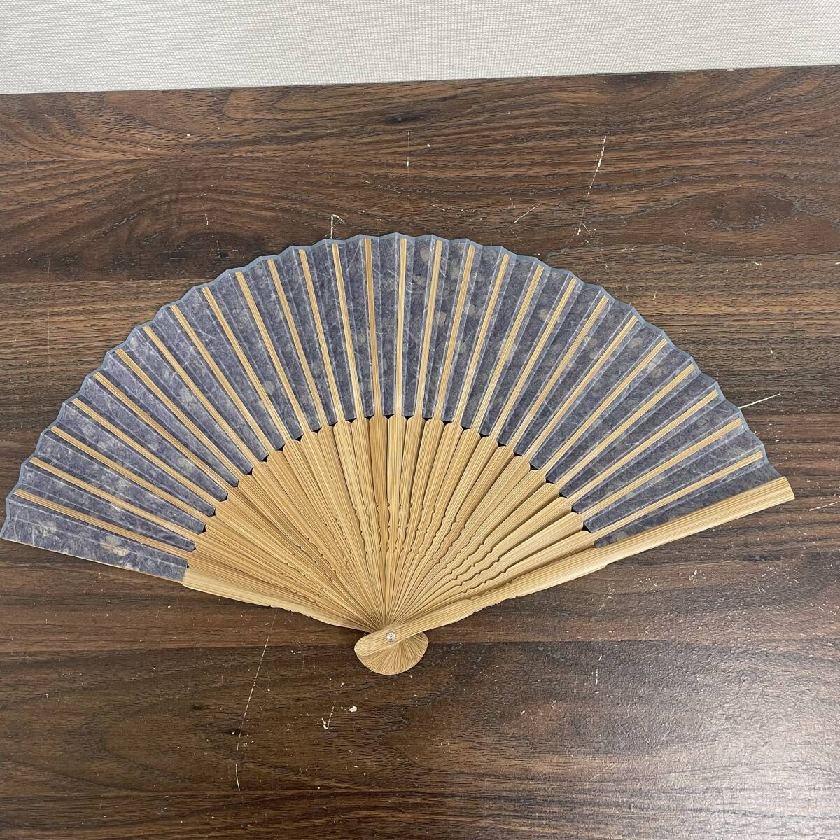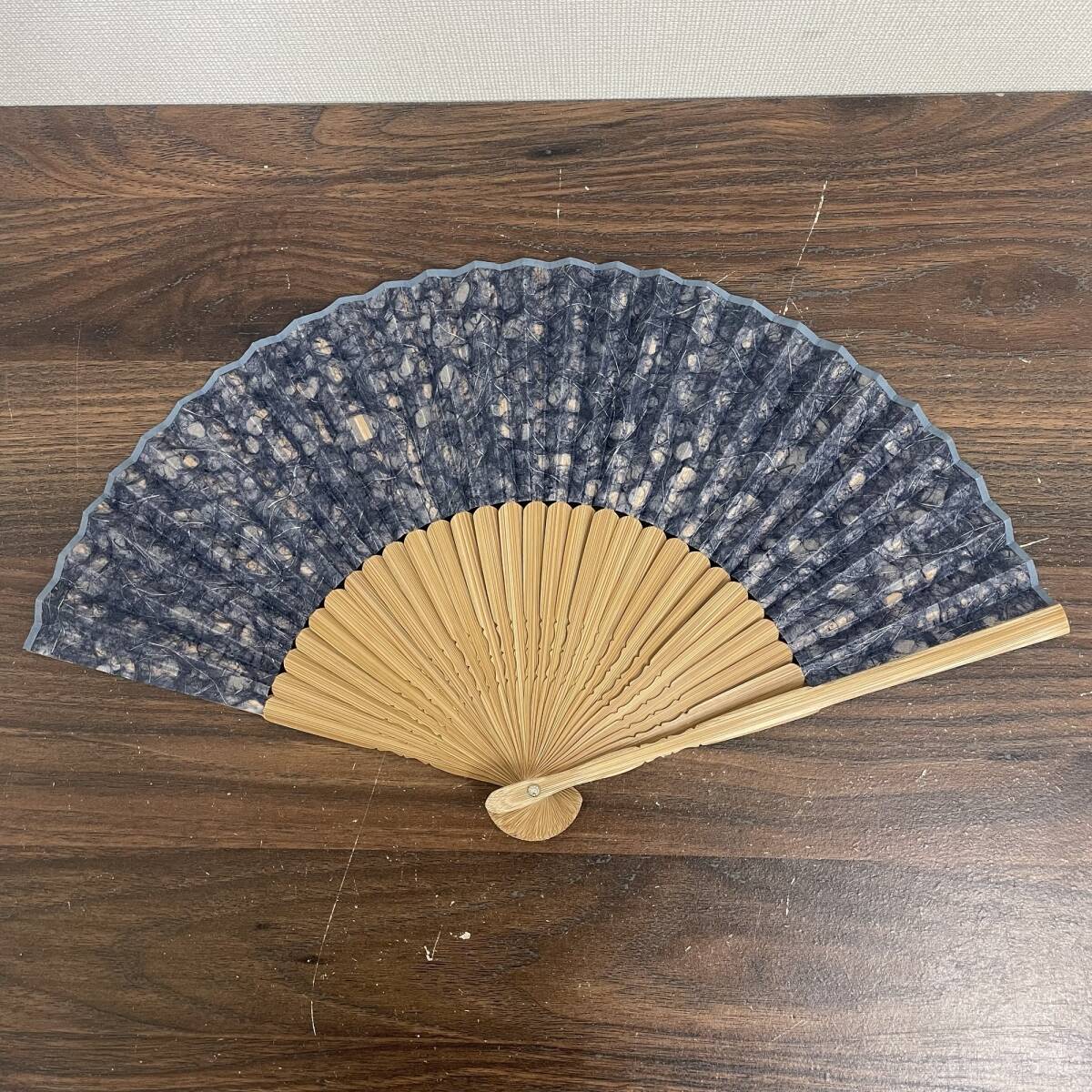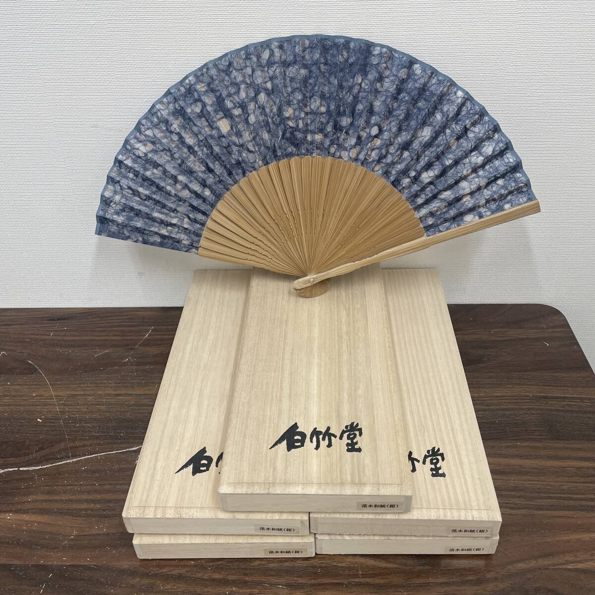 ★未使用★5点セット 白竹堂 扇子 落水和紙 紺 収納袋・箱有 はくちくどう  京都 和装小物 着物 管4723