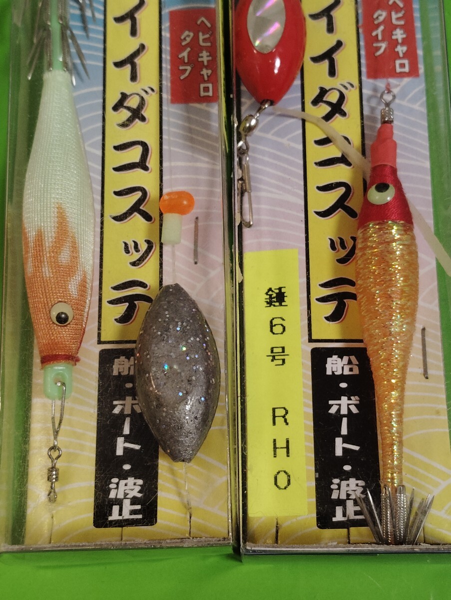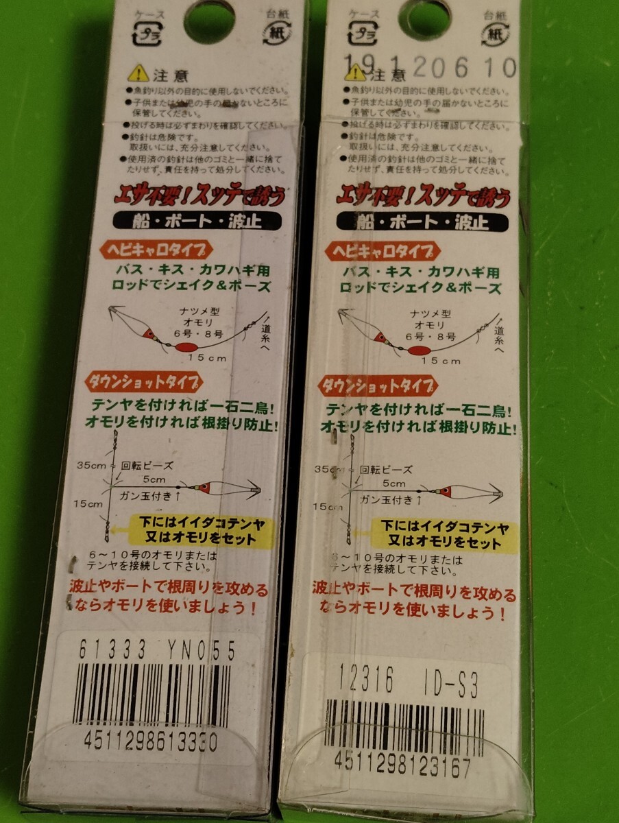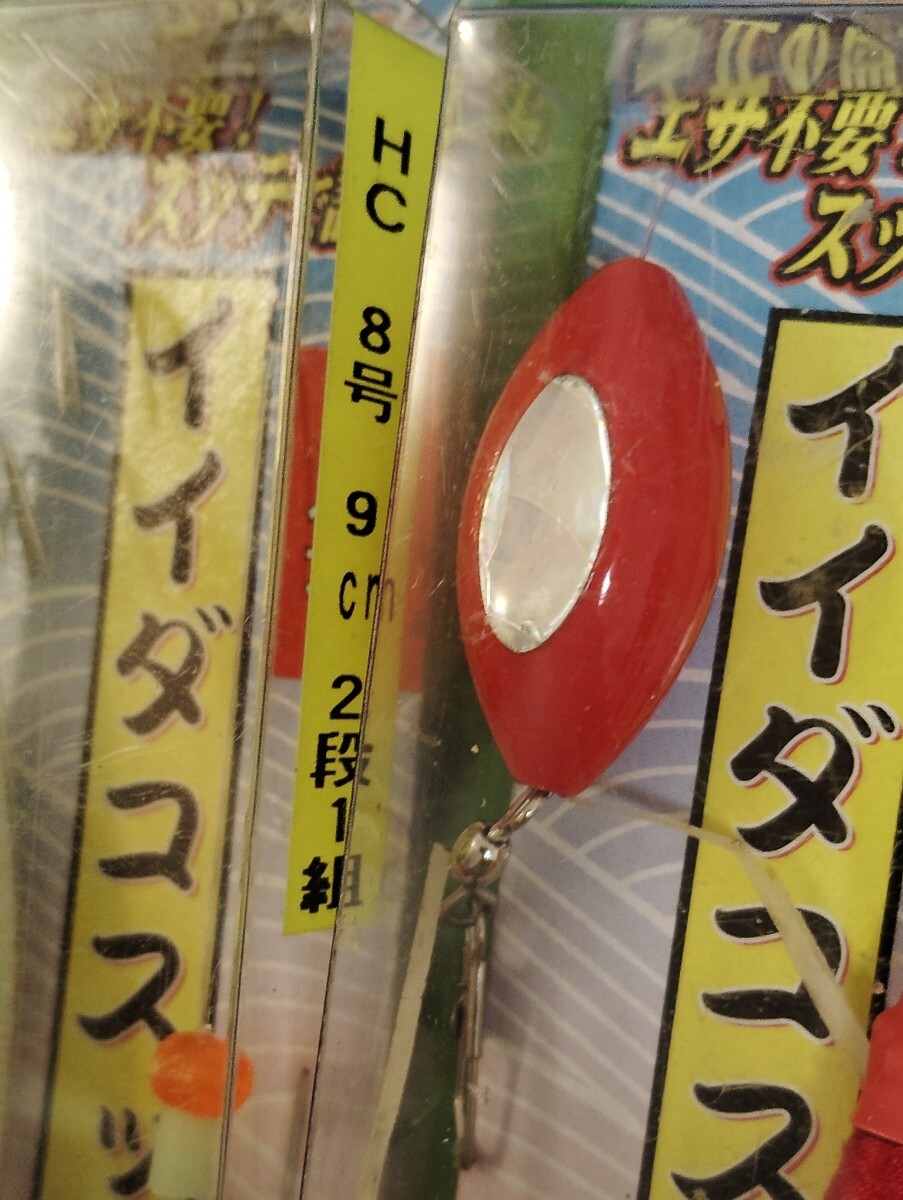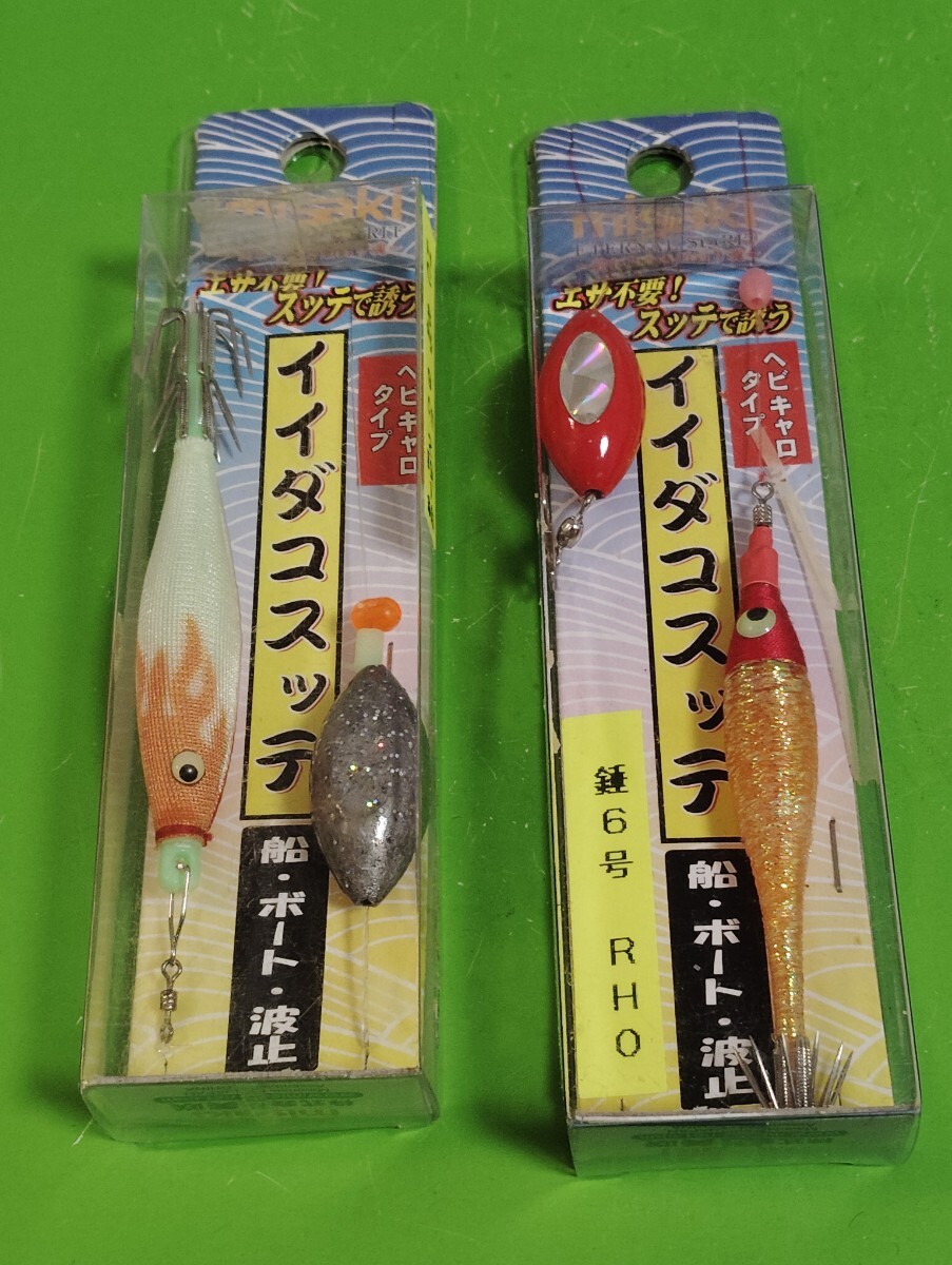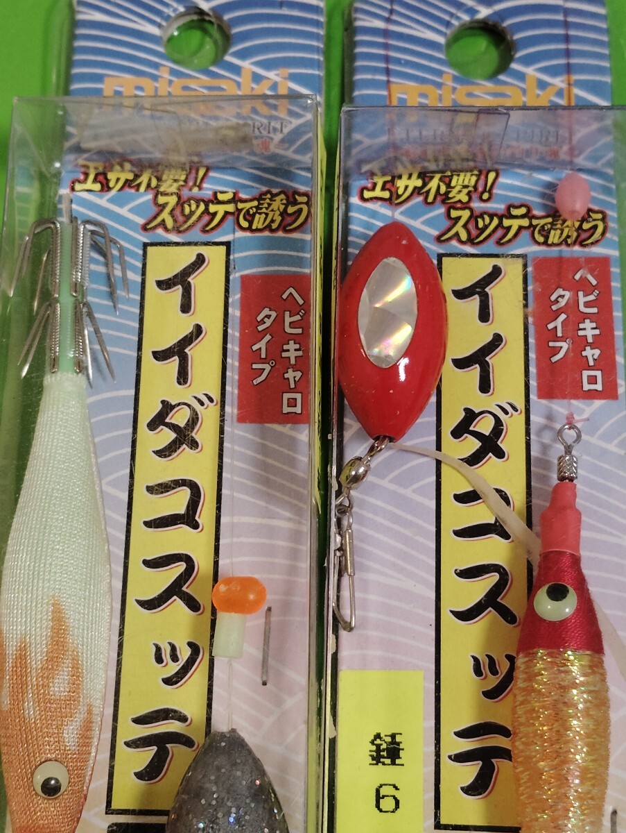ミサキ イイダコスッテヘビキャロ 2個セット 新品ですがパッケージはゆがみ、割れがあります。仕掛には影響ないですが右の方はおもりを止めていたゴムが切れています。 同梱、取り置き可。