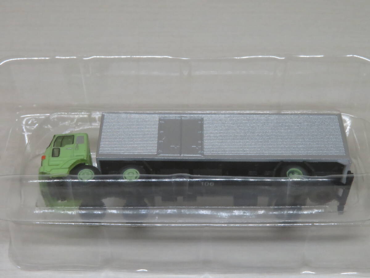 TOMYTECザ・トラックコレクションのNゲージスケール(1/150)モデルです。購入後、中身の確認のため外箱を開封しましたが、その後は箱に入れたまま暗所保管しておりましたので、基本的に美品ですが、個体差、塗装ムラなど量産品レベルをご理解いただける方のみ入札してください。パーツ類は、目視でチェックしていますが、万一、不良、欠品があっても返品、アフターフォローは一切お受けしませんので、そういうリスクを承知いただける方のみ入札してください。外箱は上部もしくは底から開封したもので、破れ、ヘコミなどがありますので、箱の状態を気にする方は入札をご遠慮ください。