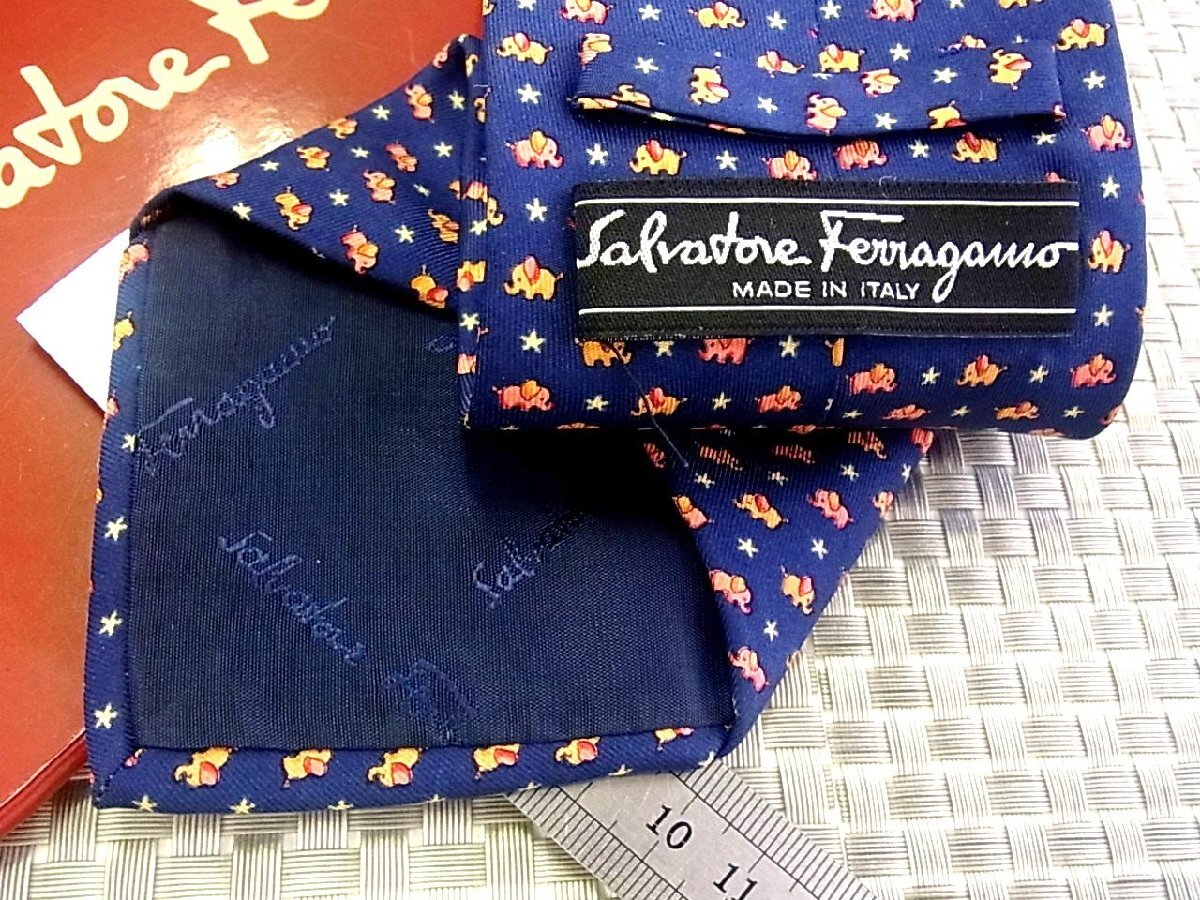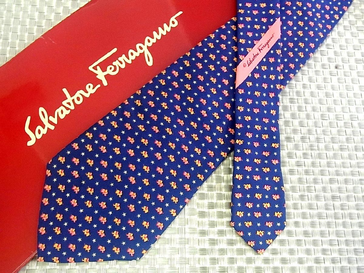♪39353C♪良品【象 ゾウ 動物 星 スター 柄】フェラガモ【FERRAGAMO】ネクタイ
